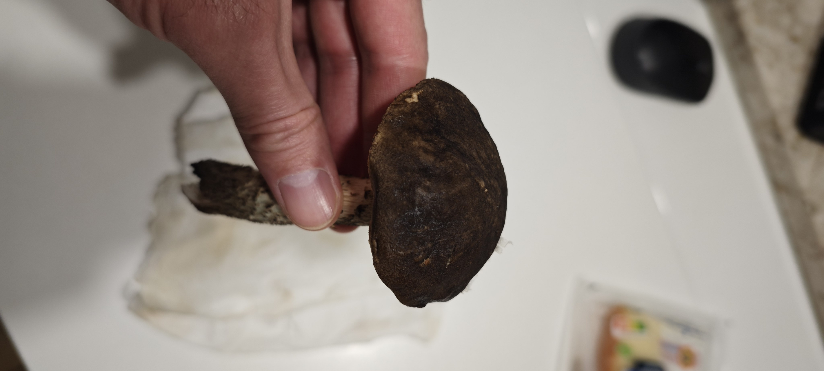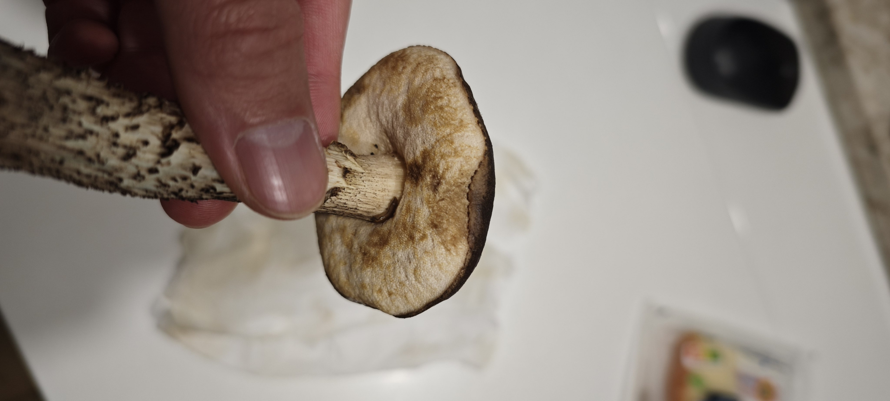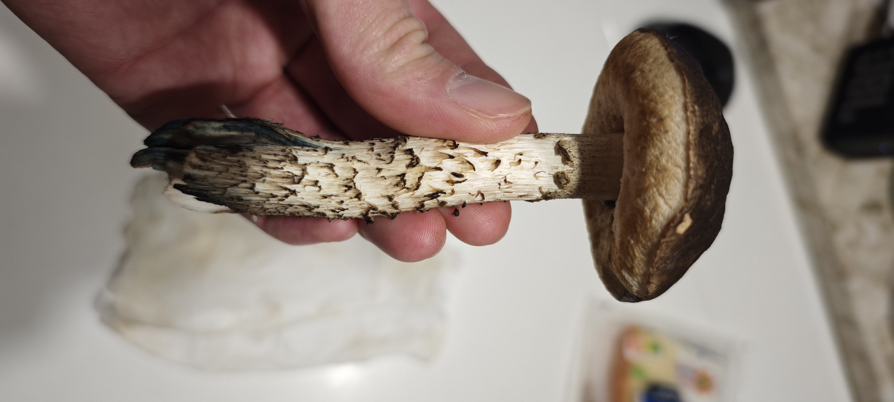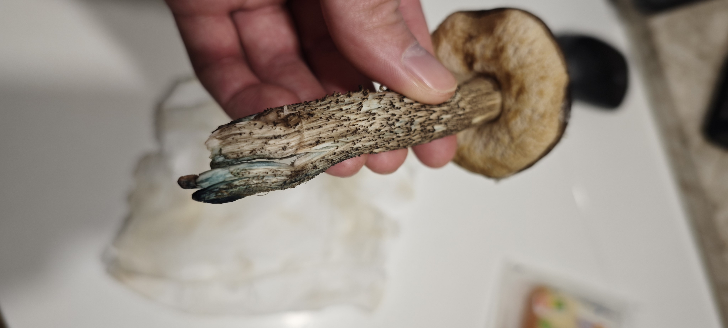 Описание гриба: Светло синий на срезе, ножка с чешуйками, шляпка темно коричневого цвета