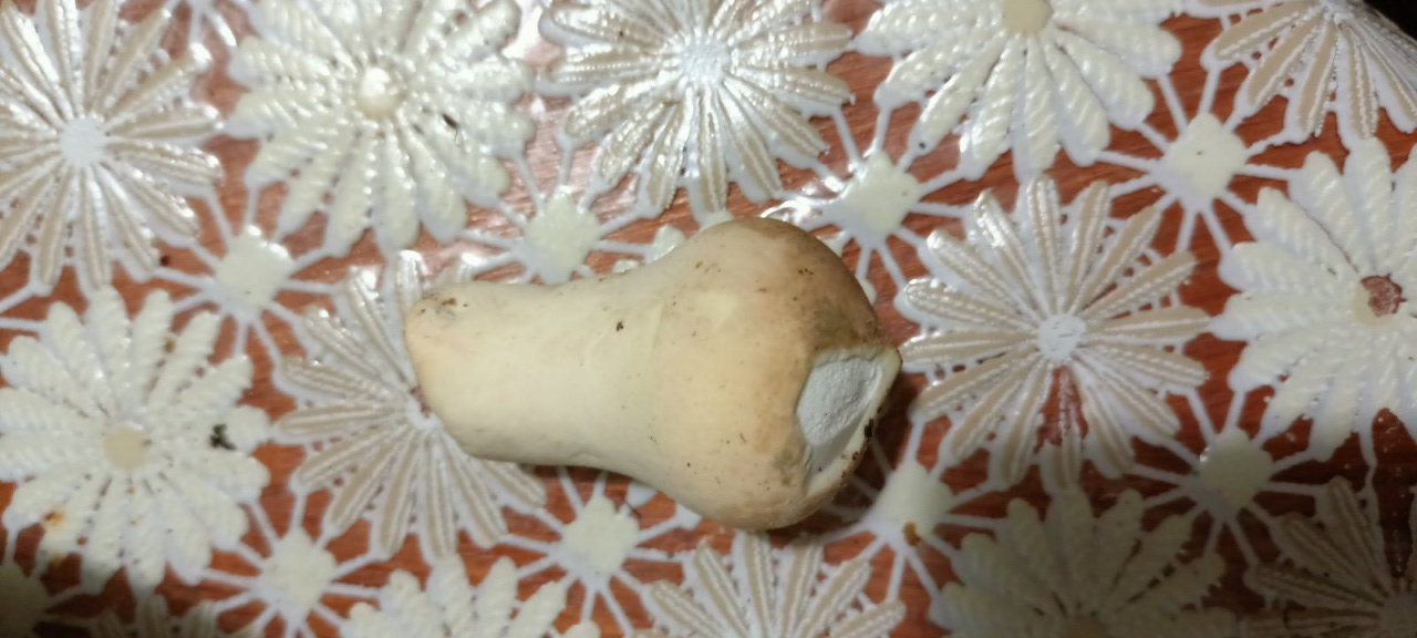 Описание гриба: гриб похож на дождевик, но у него головка покрыта не маленькими шипами, а бархатистая, похожая на муку. и по цвету головка сверху имеет коричневатый цвет. рос в смешанном лесу