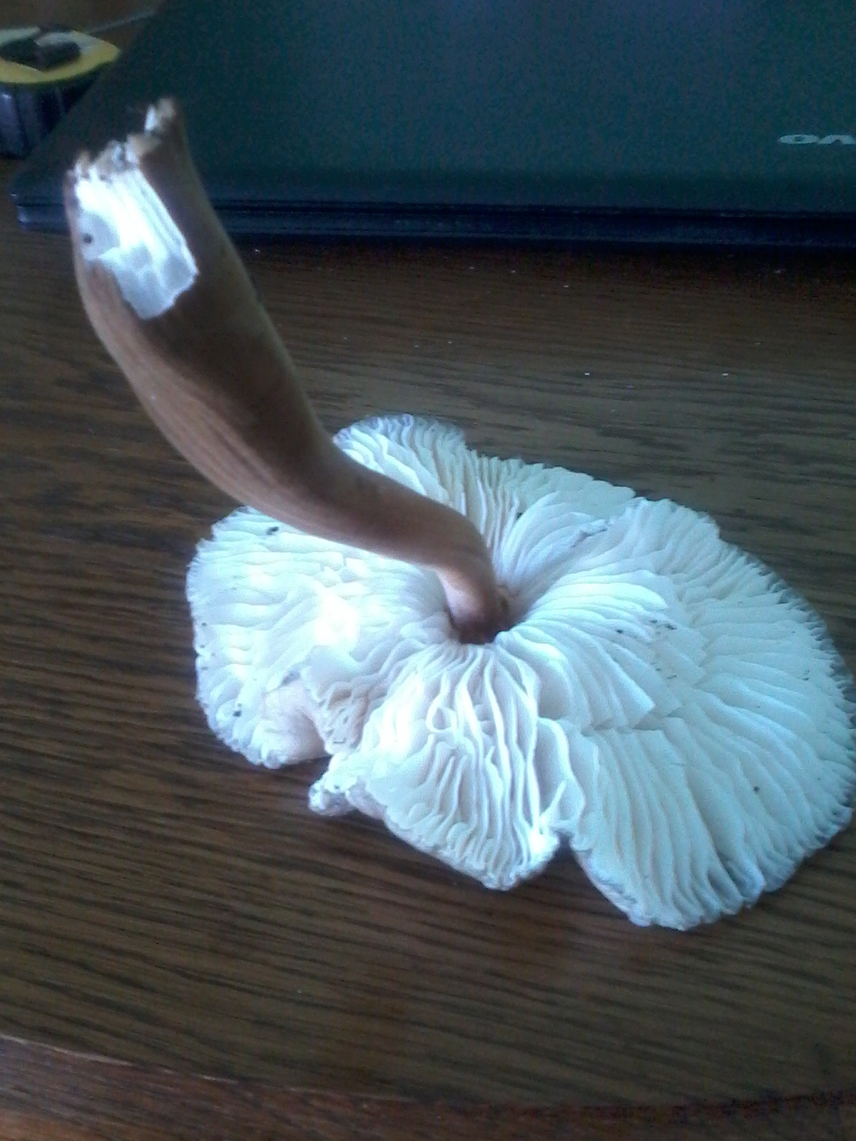 Описание гриба: Байдарская долина, цвет шляпки и ножки коричневый, ножка на срезе белая, запах грибной, шляпка и ножка бархатистые.