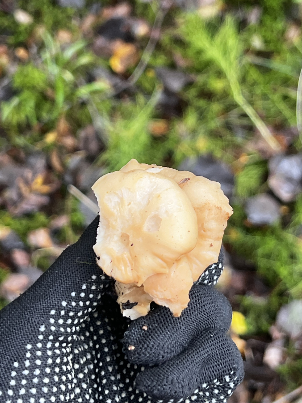 Описание гриба: Смешанный влажный лес, пластинки гриба неравномерные, толстая ножка