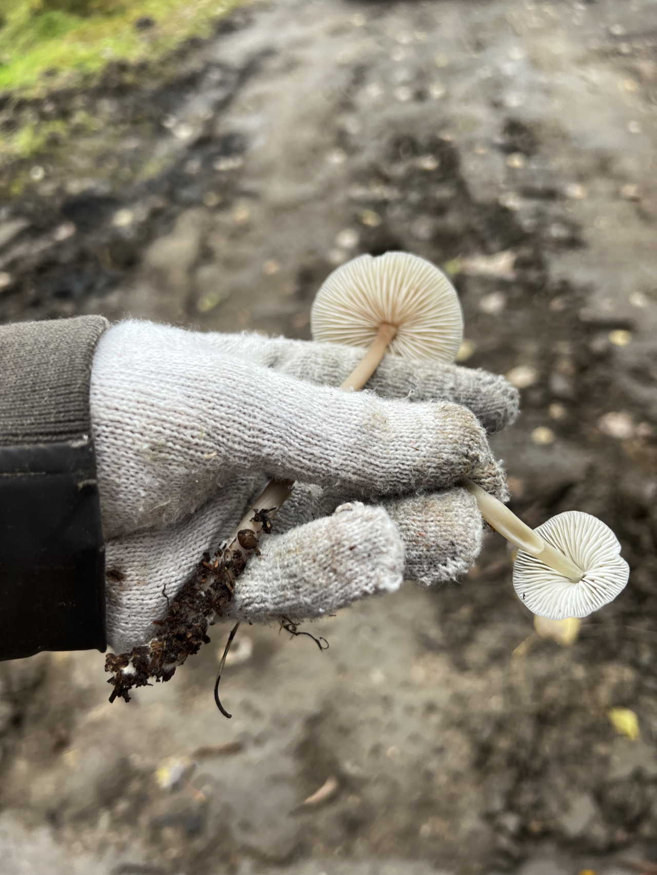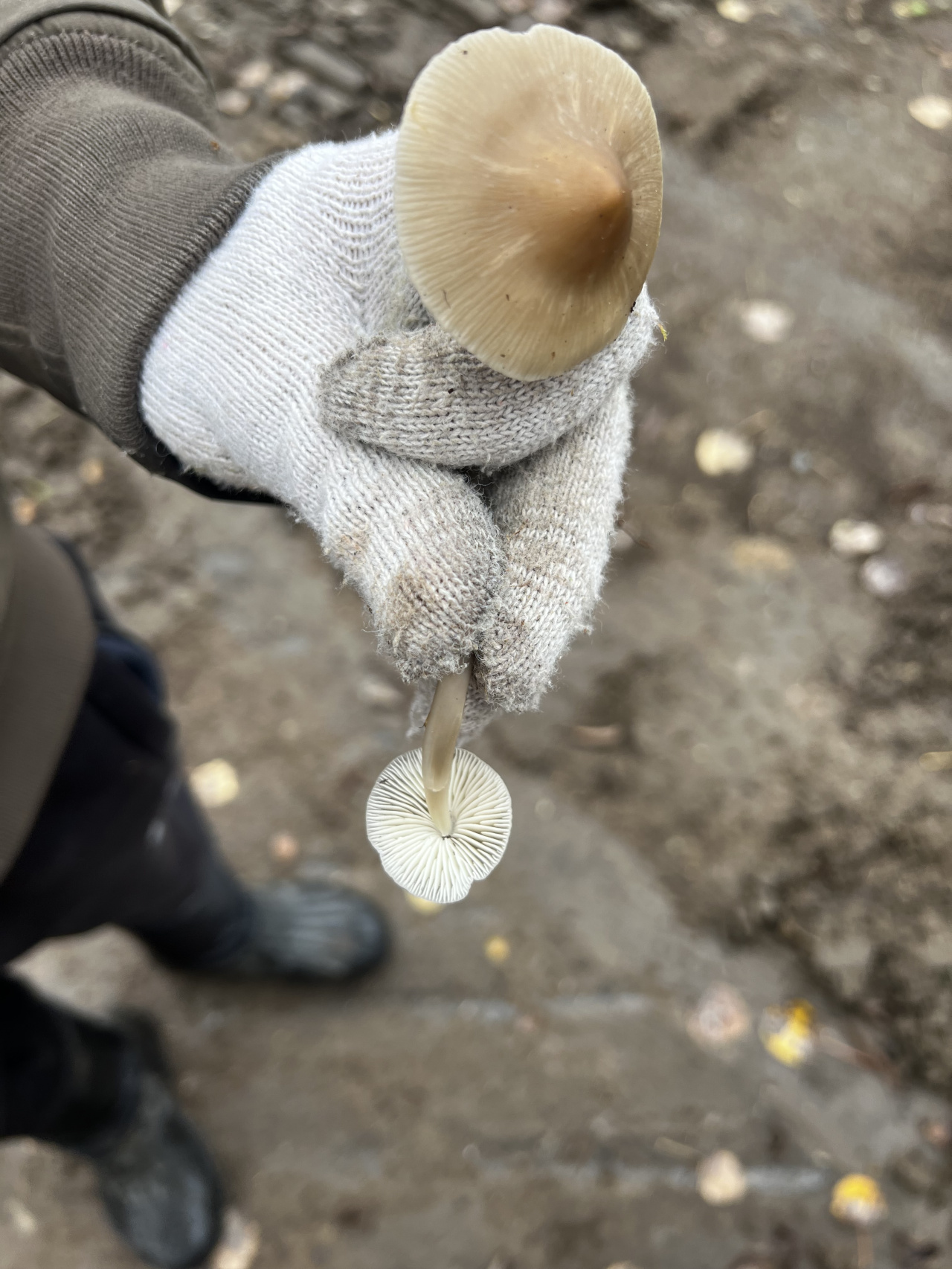Описание гриба: Смешанный влажный лес, белые пластинки, длинная ножка
