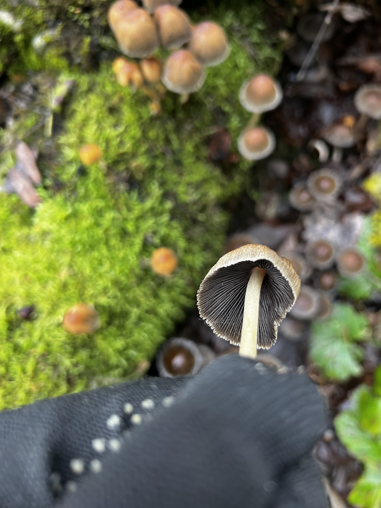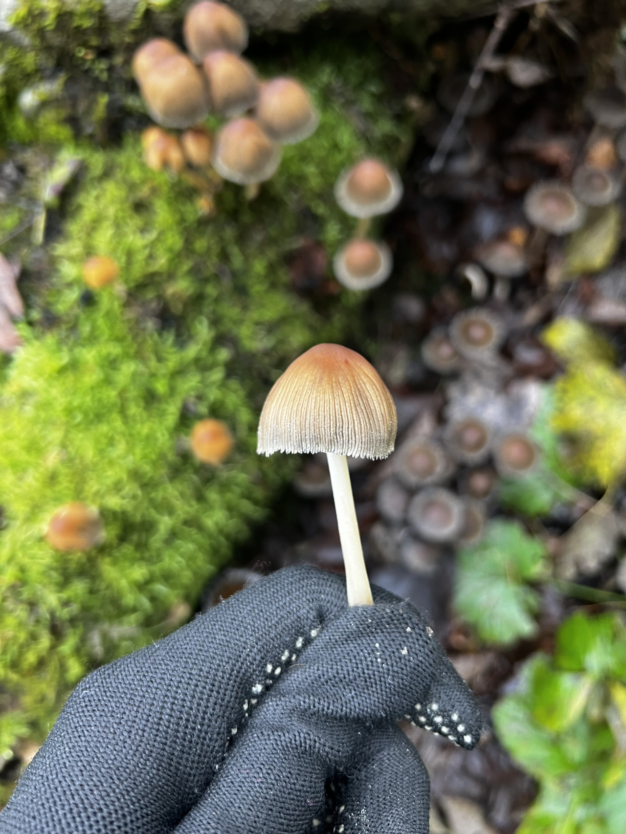 Описание гриба: Смешанный влажный лес, очень большие колонии на пнях и деревьях, мякоть ножки оранжевая