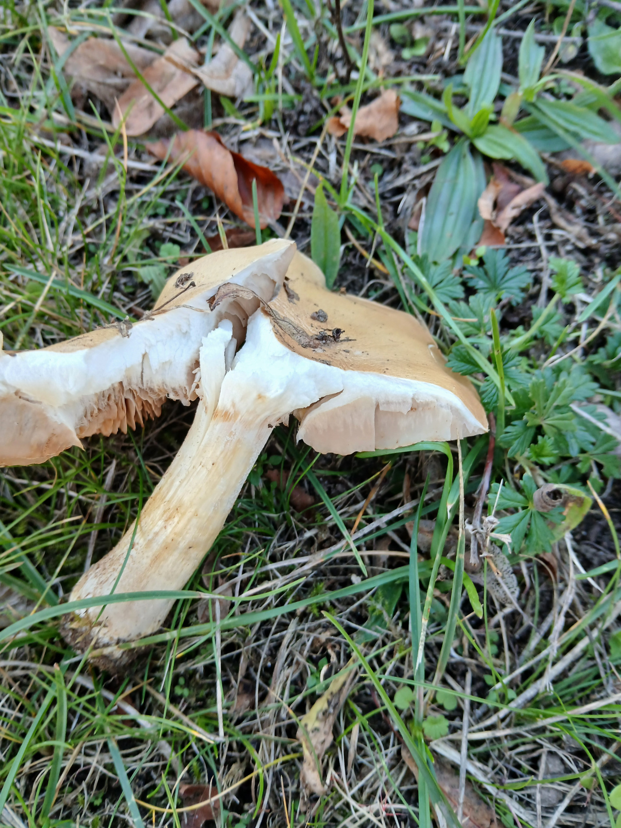 Описание гриба: Грибы растут дорожкой на газоне. Рядом не хвоцные деревья. Кустарние калины и я блоня