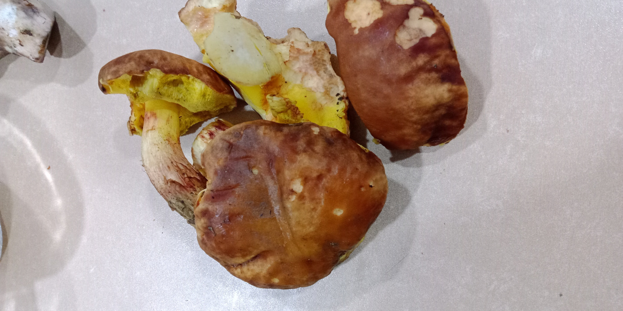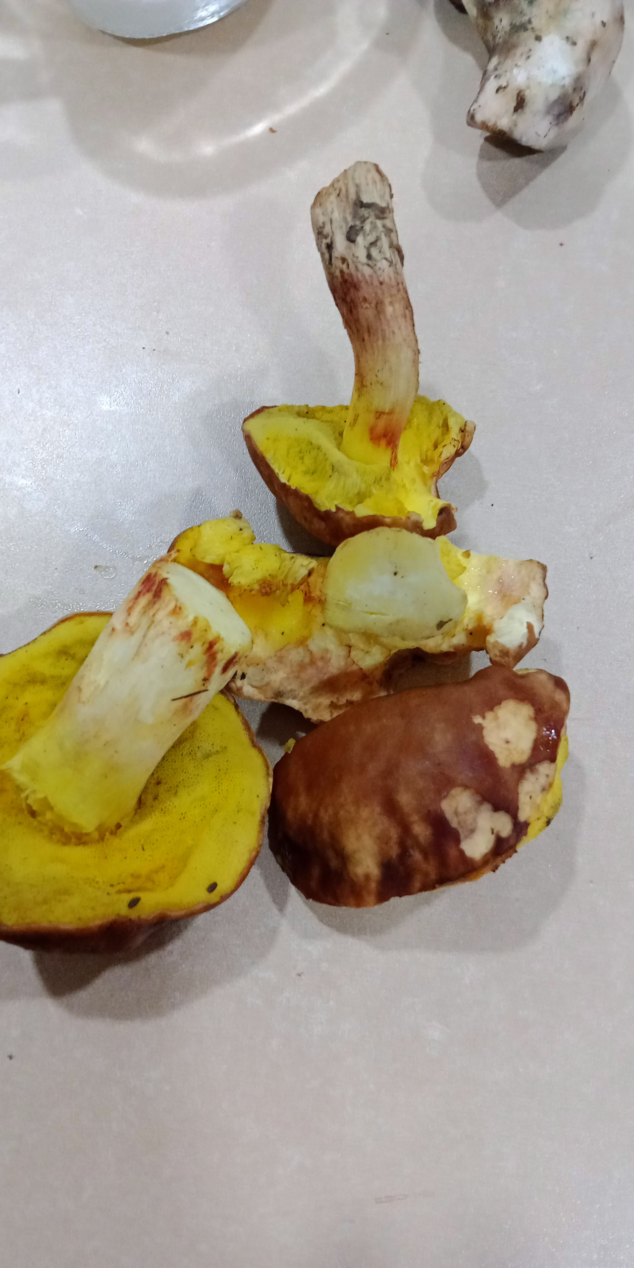 Посмотрите полубелый гриб, боровик придаточковый, моховик золотистый.