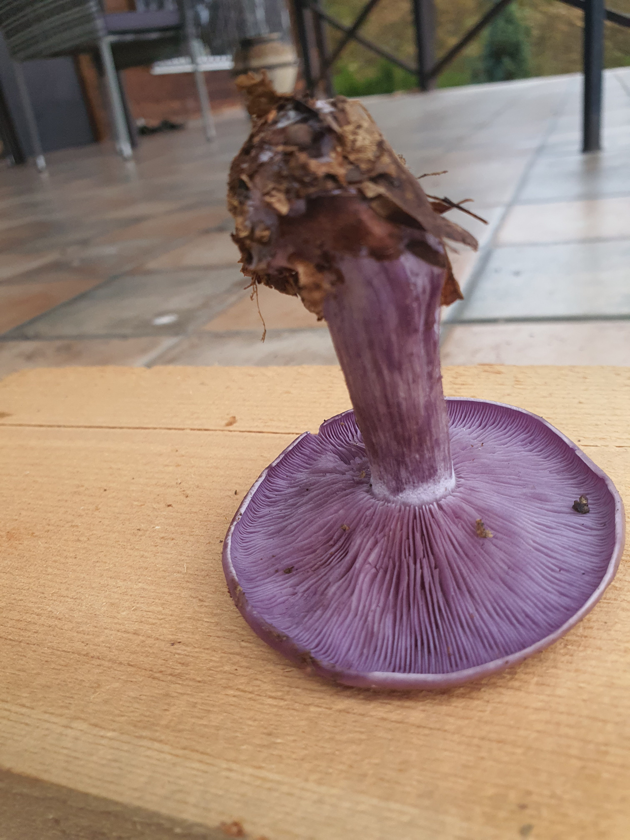 Описание гриба: Одиночый гриб фиолетовогоцвета полностью. Найден Апшеронск, Краснодарского края.