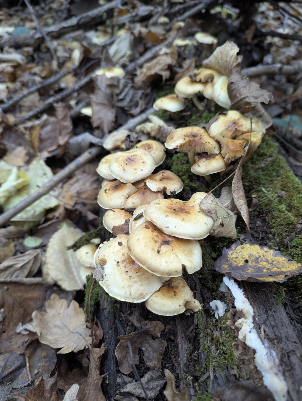 Этого одного фото, действительно, недостаточно для точного определения. Но по верху шляпки можно предположить, что Чешуйчатка боровая.