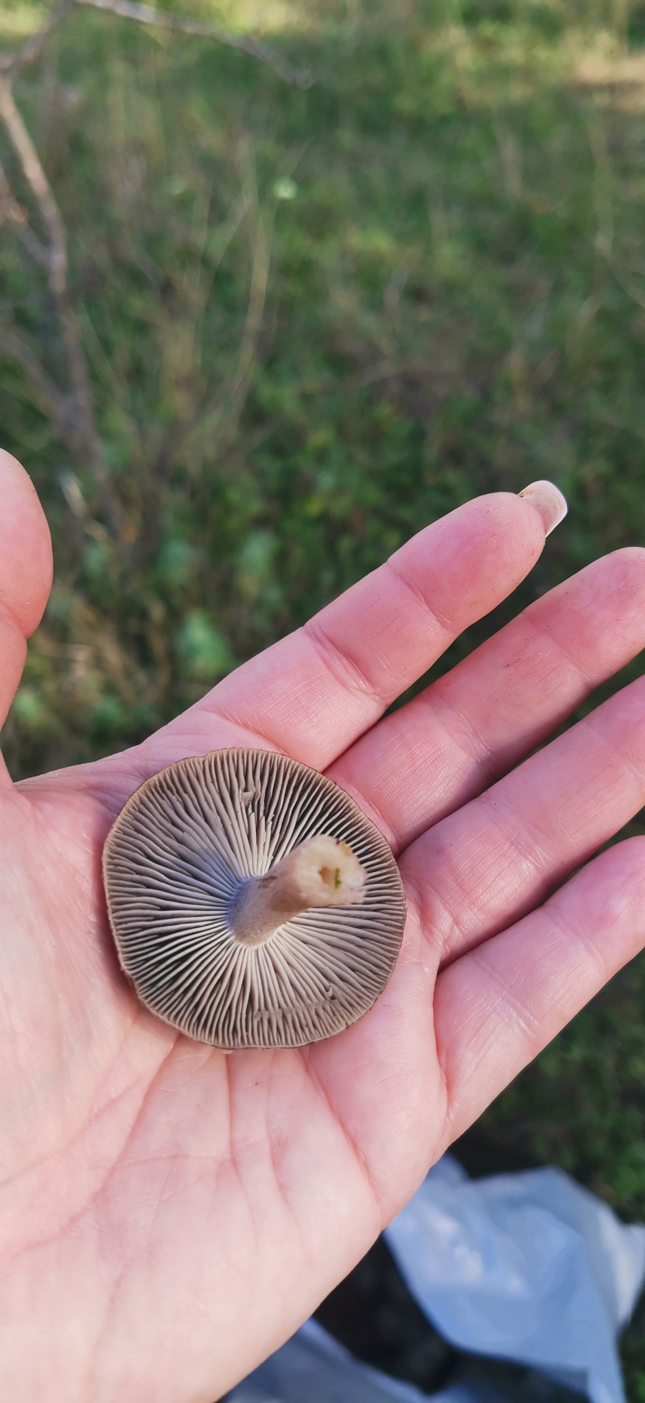Описание гриба: Помогите определить: место сбора травянистый холм, граница с сосновым лесом. Росли очень кучно, все небольшого размера, серая шляпка, слегка хрупкие.