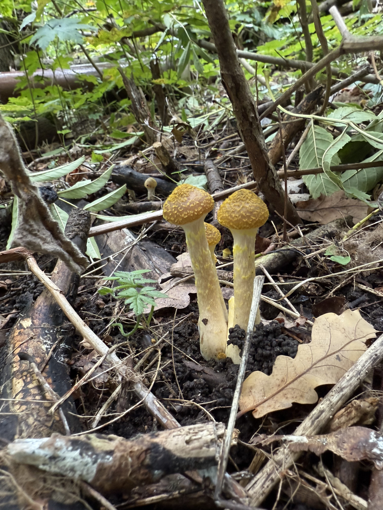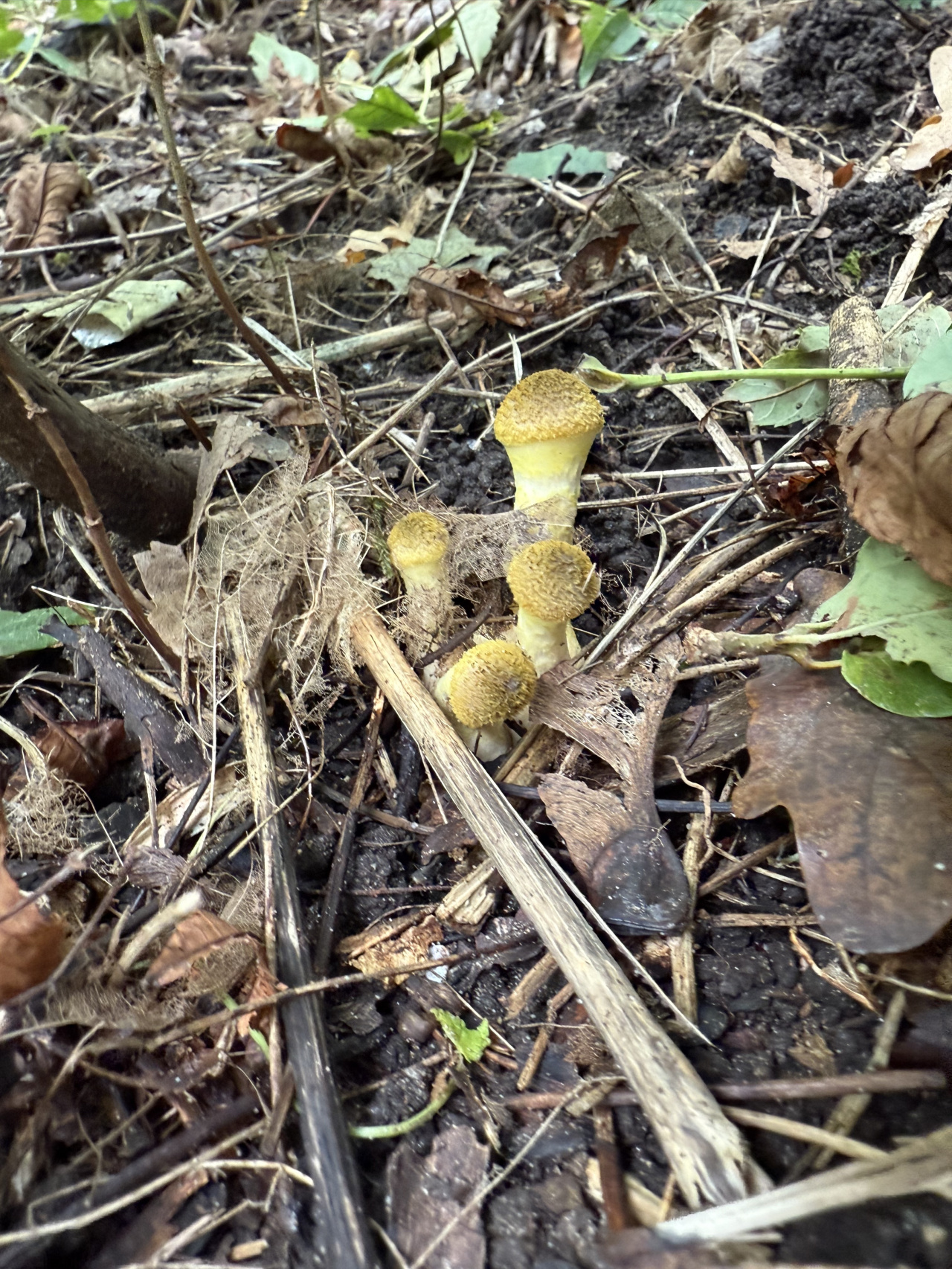 Описание гриба: Не опенок же? больно желтый, растут не такими клумбами как опята, вроде вместе но не прям много вместе. в интервенте не нашла. лес лиственный