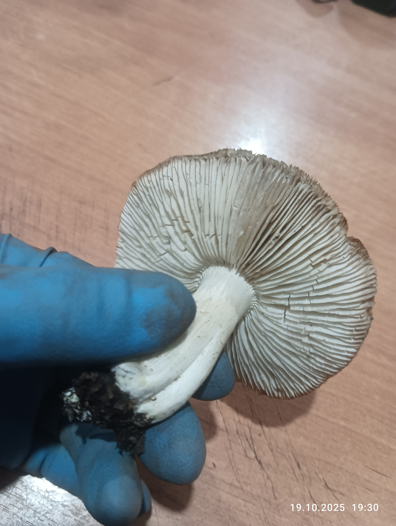 Описание гриба: Смешанный лес. Прянный запах. Цвет на срезе не меняется, пластинки бело-кремовые, ножка на срезе белая, не полая