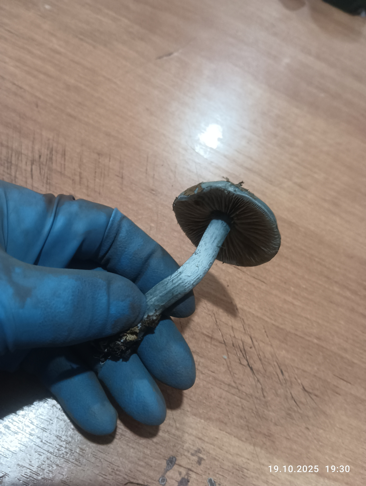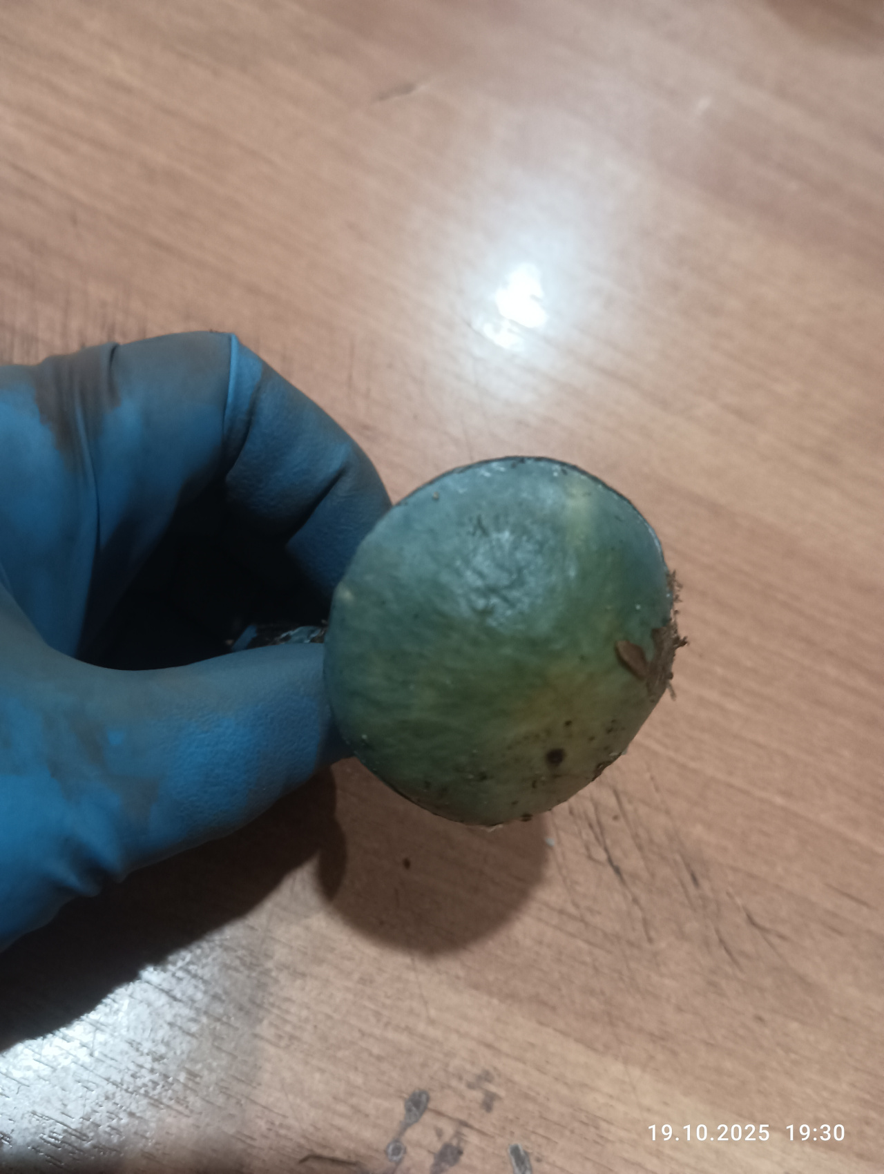 Описание гриба: Нашёл в смешанном лесу, запаха нет, цвет Сине —зеленоватый,