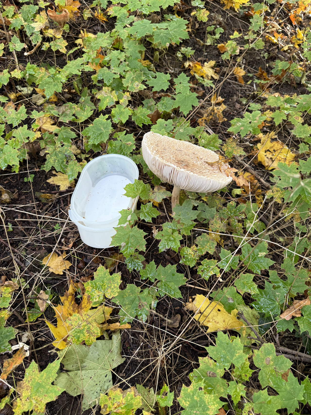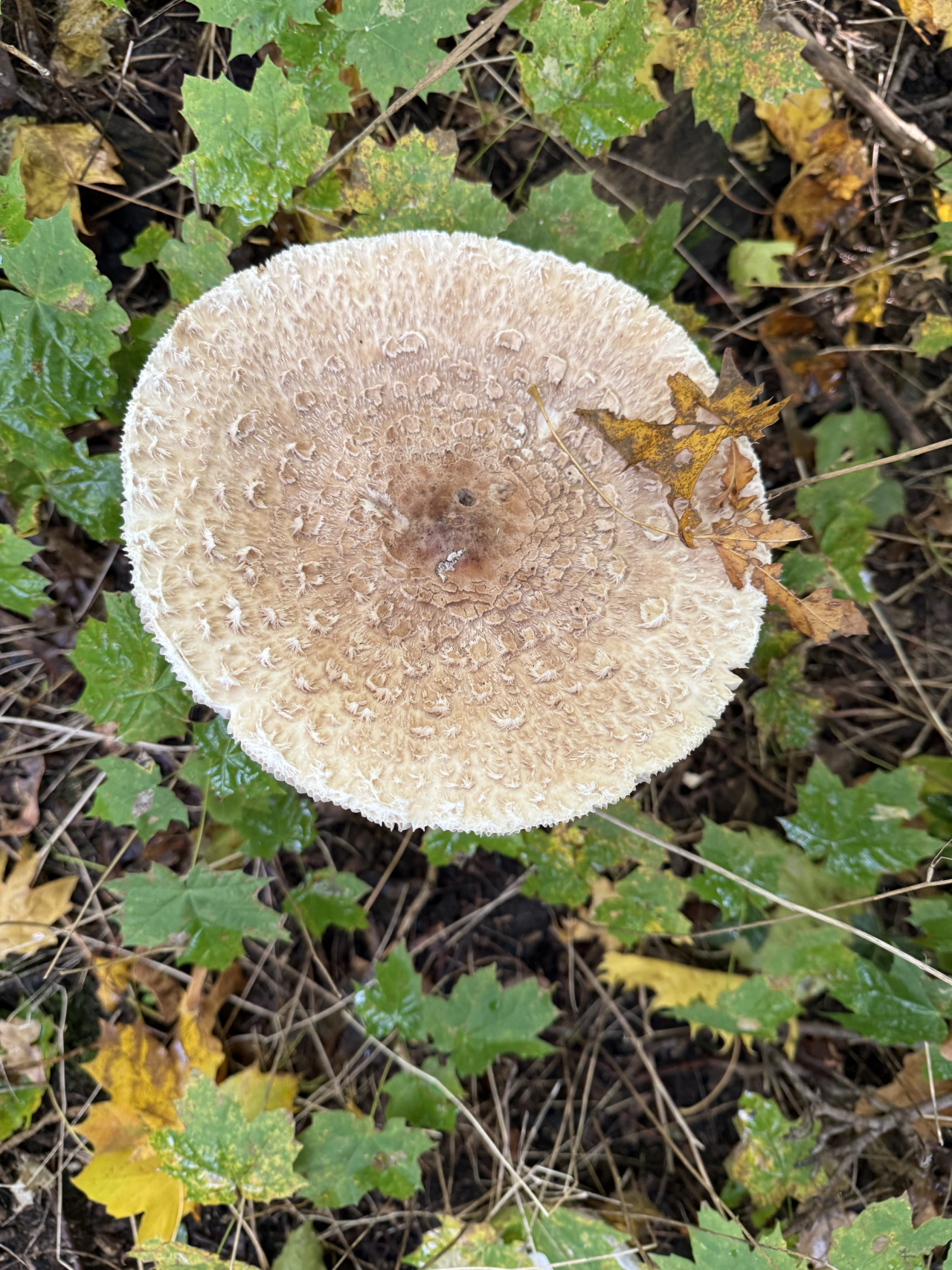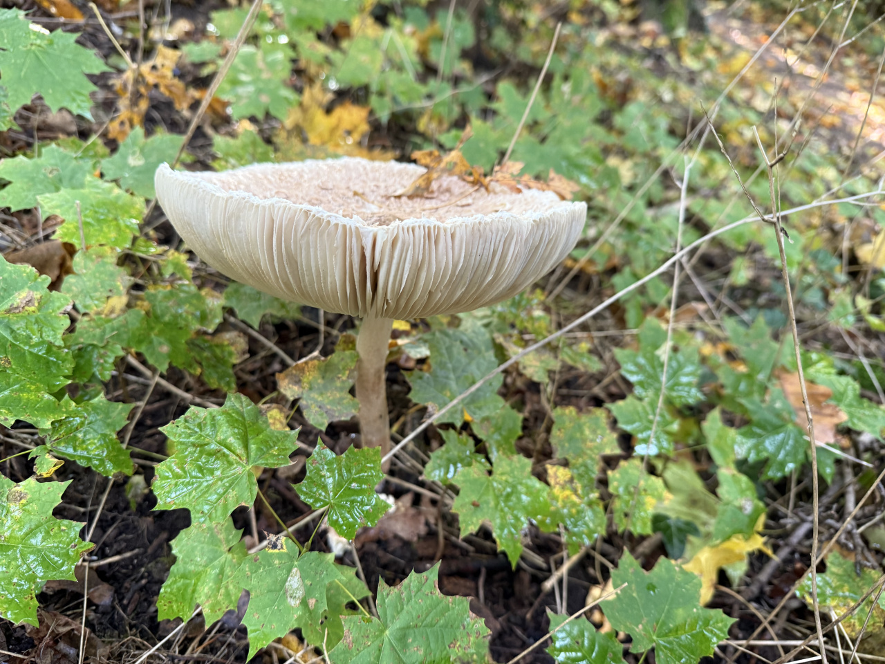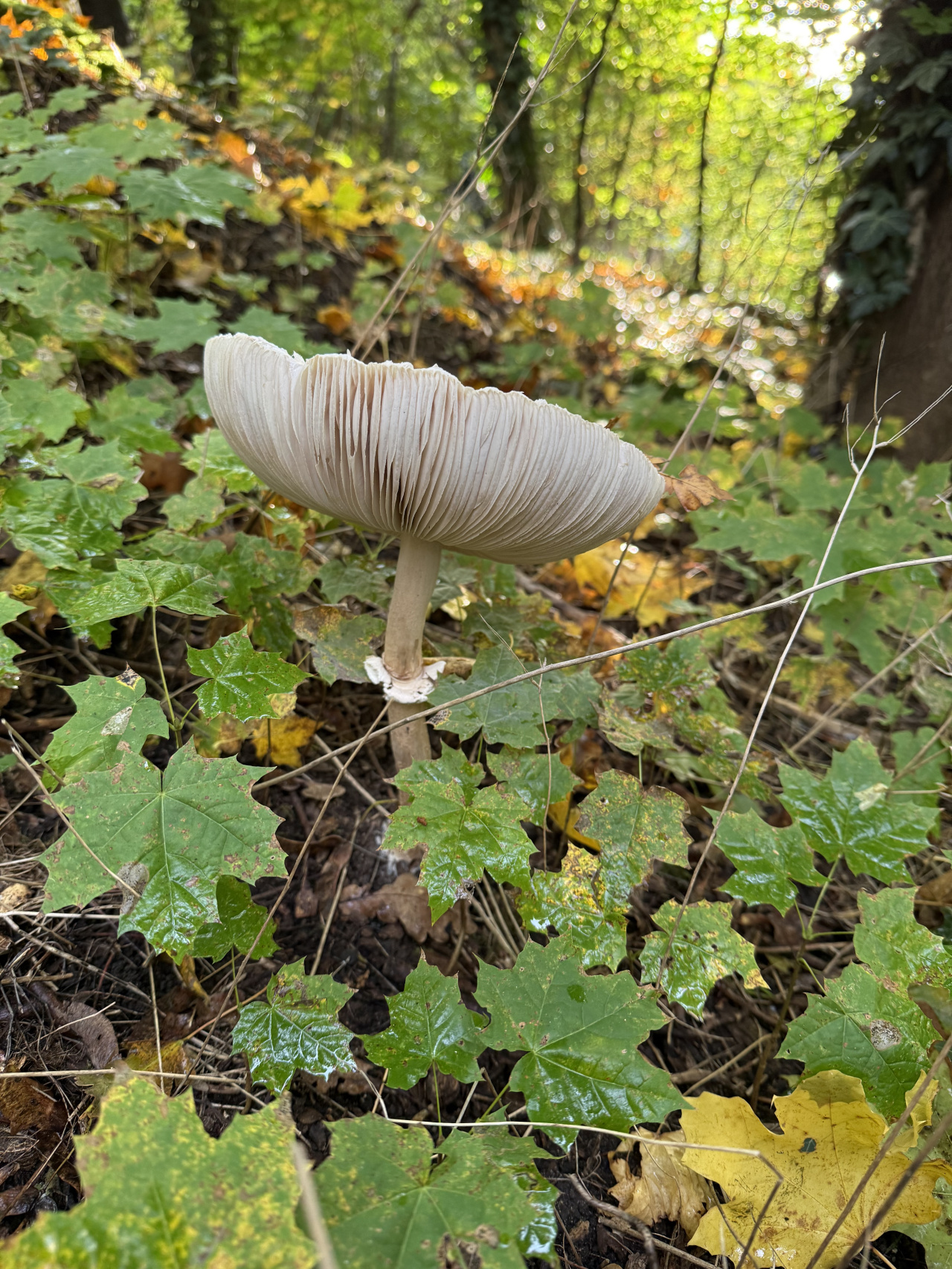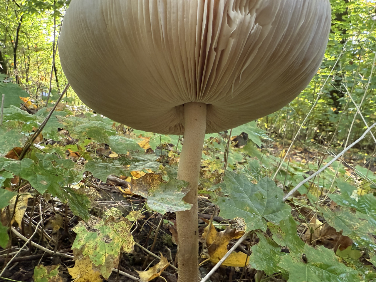 Описание гриба: зонтик пестрый? колечко не двигалось вверх вниз, а оторвалось, поэтому что-то не пойму какой тогда гриб. хотя на другие вроде не похож. лес лиственный