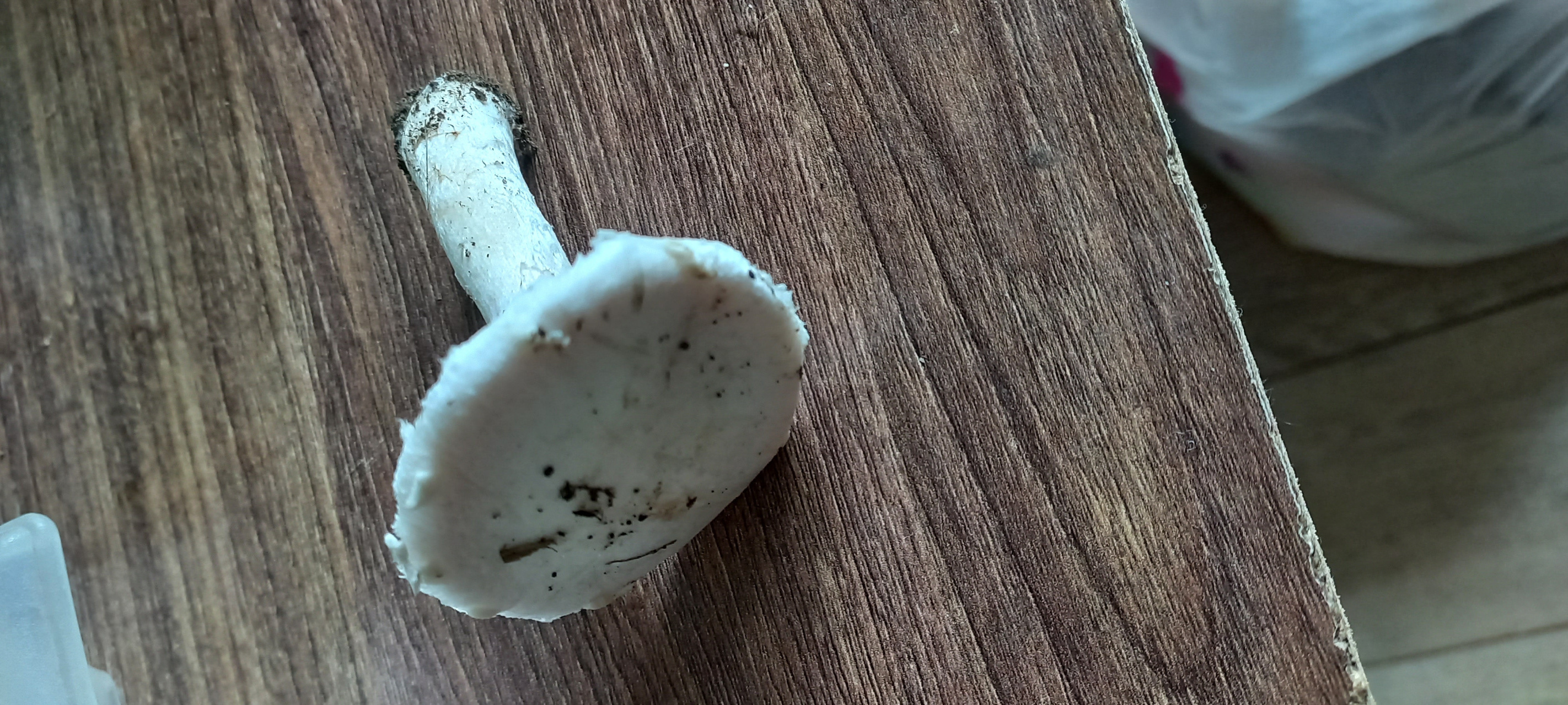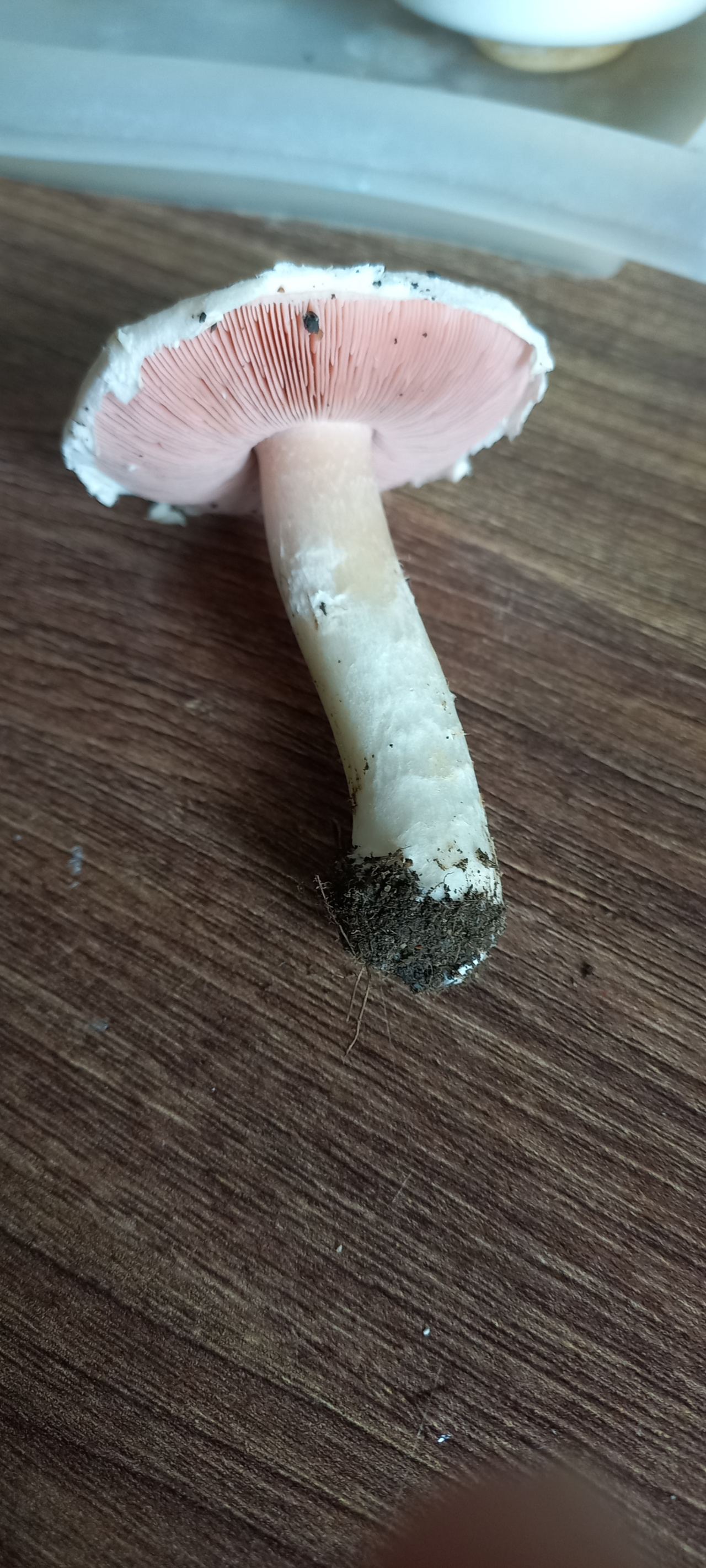 Описание гриба: Краснодарский край, приусадебный участок, цвет белый, внутри шляпки грязно розовый, запах грибной приятный
