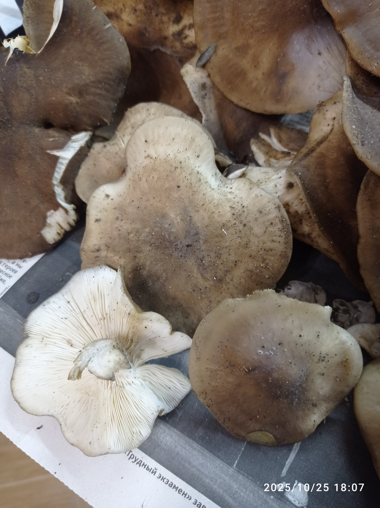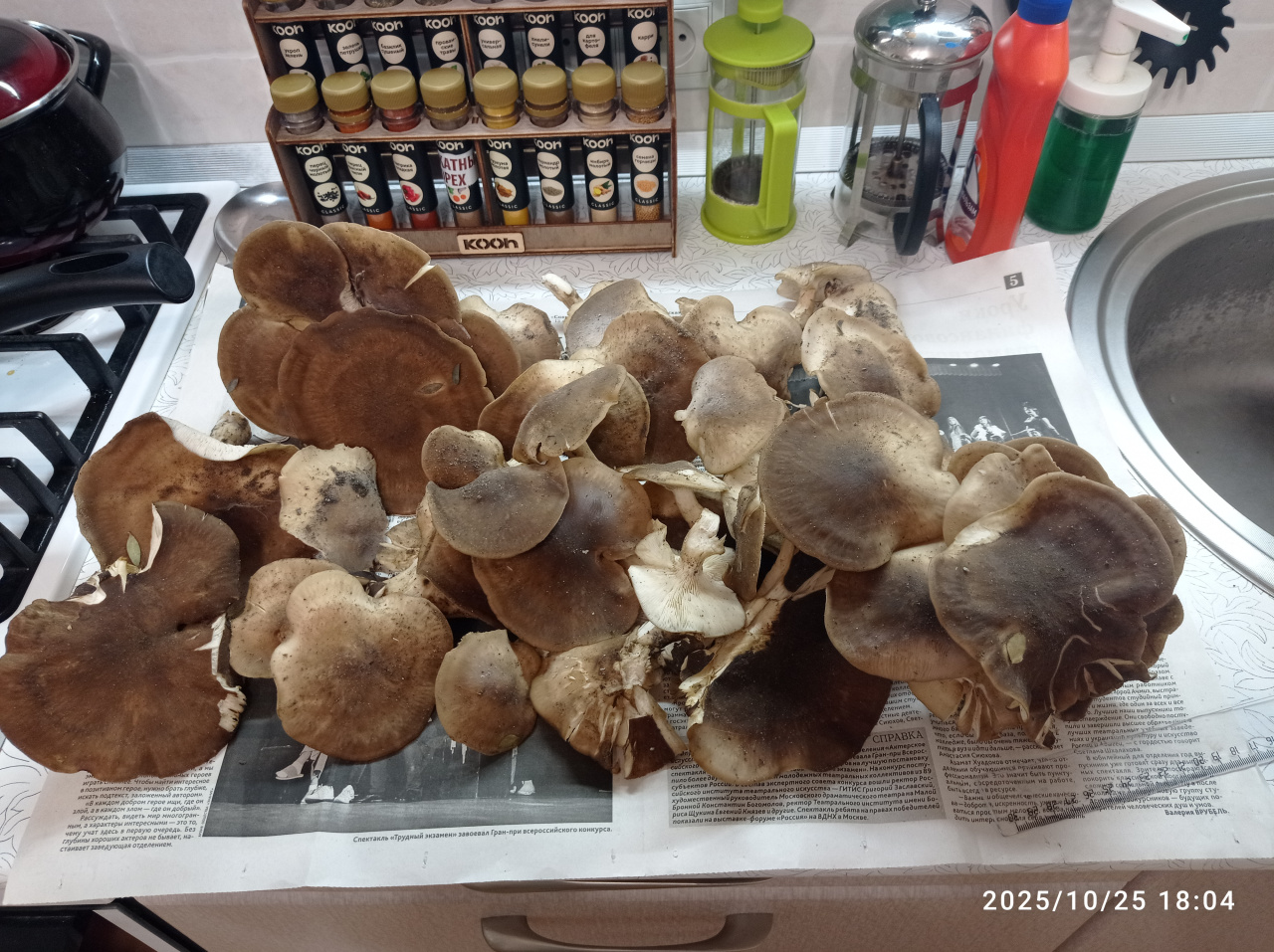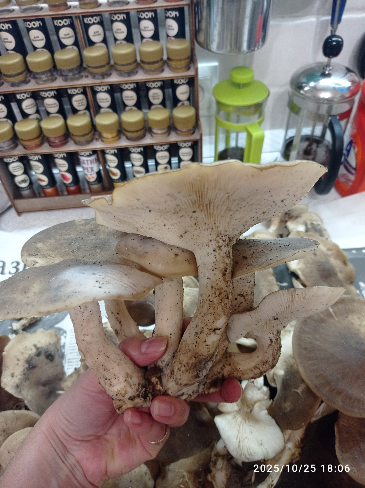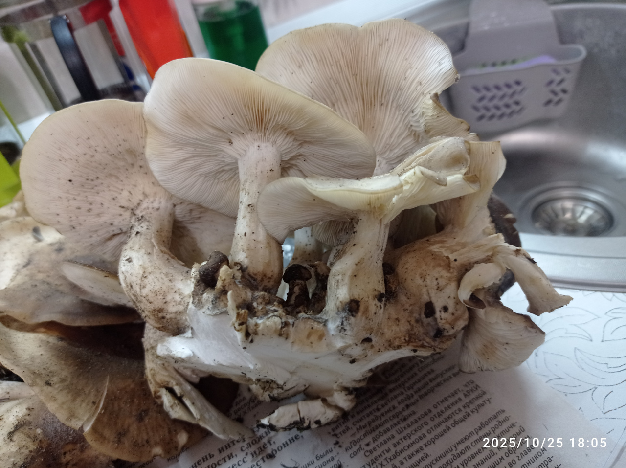 Описание гриба: Срезали на клумбе прям возле нашей пятиэтажки. Живём в посёлке рядом с Краснодаром. Растёт семьёй. На общем фото одна семья. Самая крупная шляпка в диаметре 12 см. Запах больше похож на мучной,начала чистить запах стал более резкий, острый. Плотные,крепкие,не ломкие.В воде не размокли. Цвет не поменяли после среза и надавливания. На срезе остаётся сухим. На одном пятачке нарезали целую корзину.