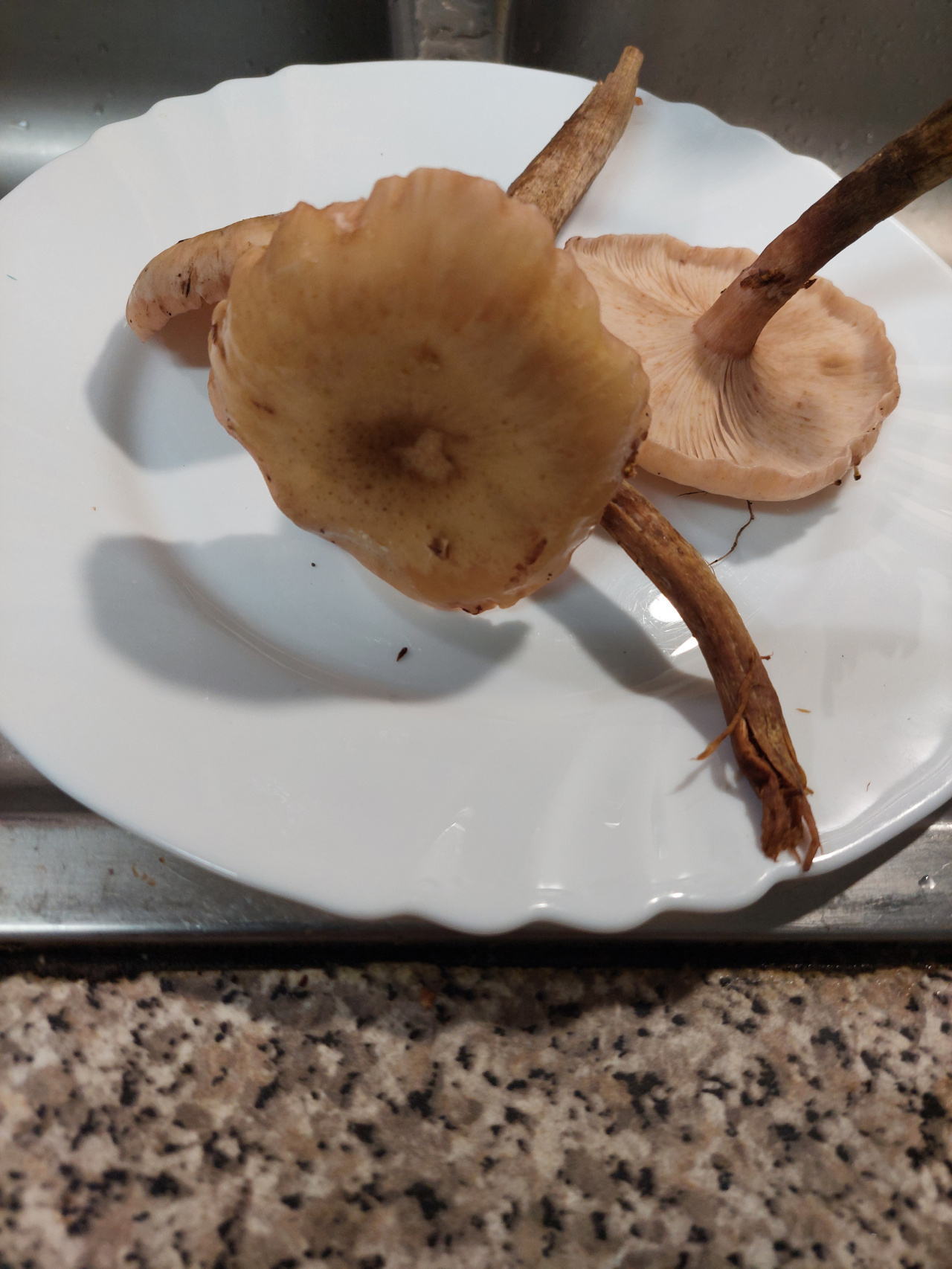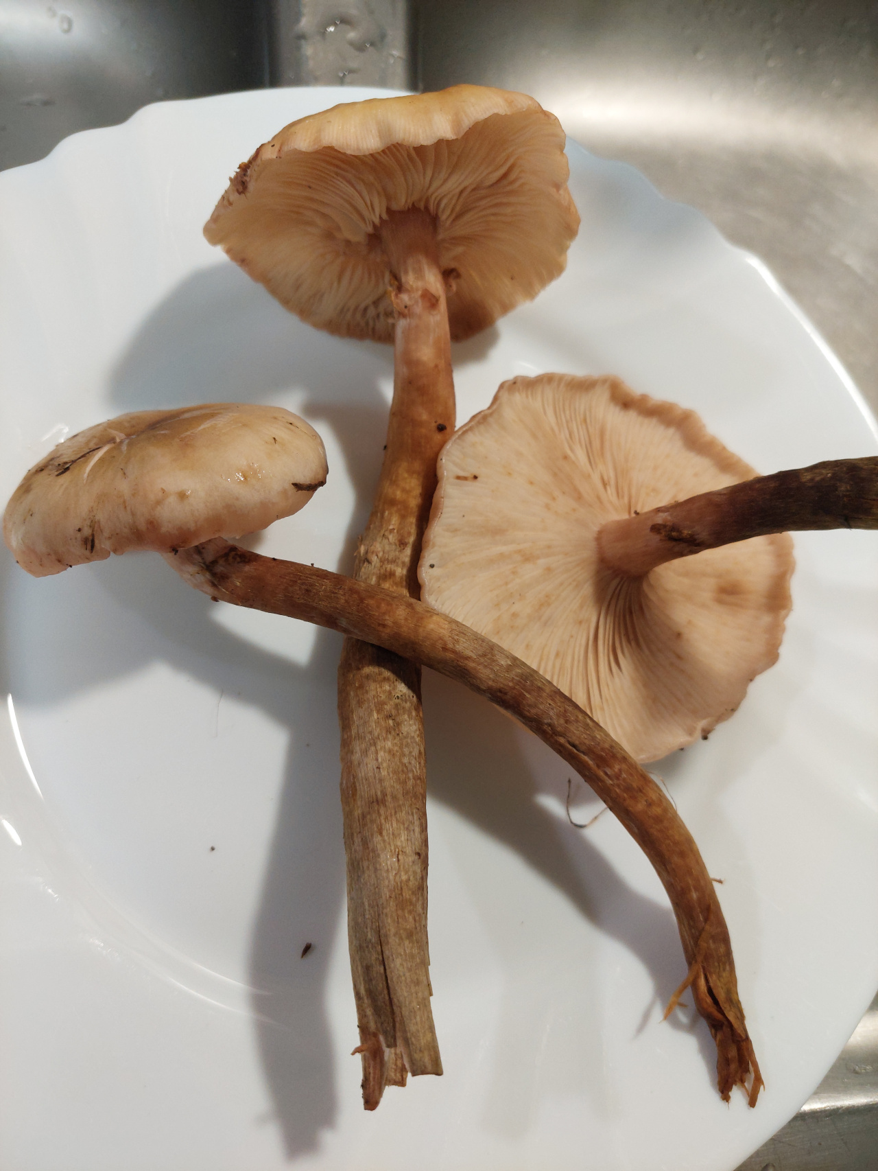 Вижу следы от кольца и тычки на шляпе. Кажется, что это осенний опенок, хоть и светловат