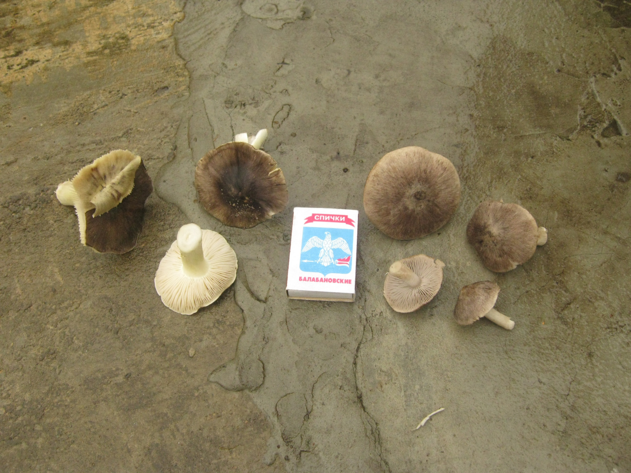 Справа — вероятно, рядовка землисто-серая.