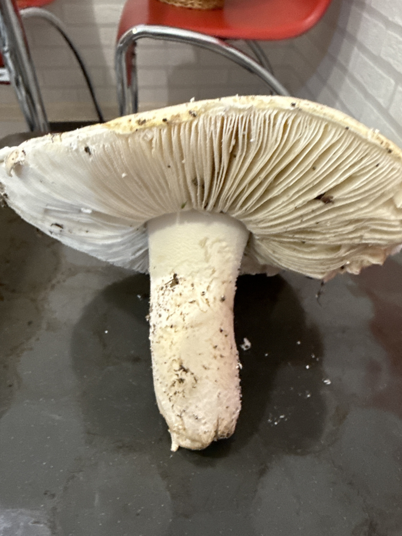 Среди мухоморов есть белые похожие друг на друга грибы, мухомор яйцевидный -съедобный, мухомор очевидный/близкий (amanita proxima) — смертельно ядовитый. Главное отличие — цвет вольвы(подземная часть, мешочек), у яйцевидного — белая или рыжеватая, у близкого — рыжая. У яйцевидного чаще остаётся «творог»Также есть мухомор весенний/вонючий — тоже смертельно ядовит, тоже полностью белый, но на яйцевидный поход гораздо меньше.На всякий случай не стоит употреблять собранные грибы в пищу на этот раз, но позже собирать их целиком и осматривать.