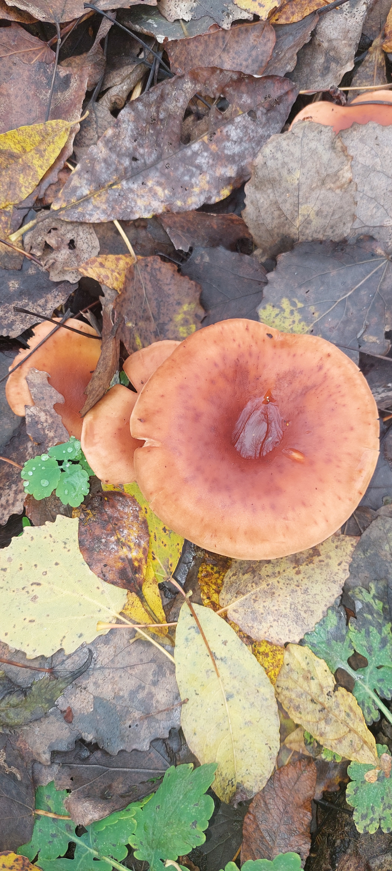 Описание гриба: Беларусь,Минская облость. Грибы рыжевато- оранжевые с тёмными крапинками,растут обильными группами и дорожками, лес лиственный почва торфянистая.
