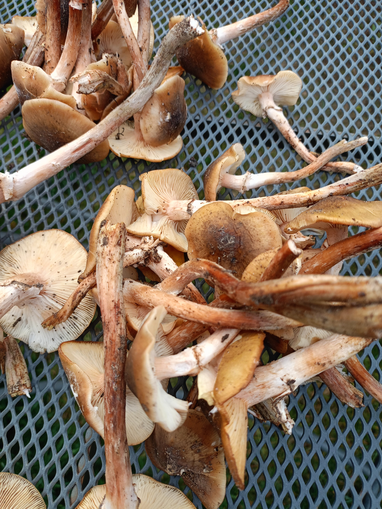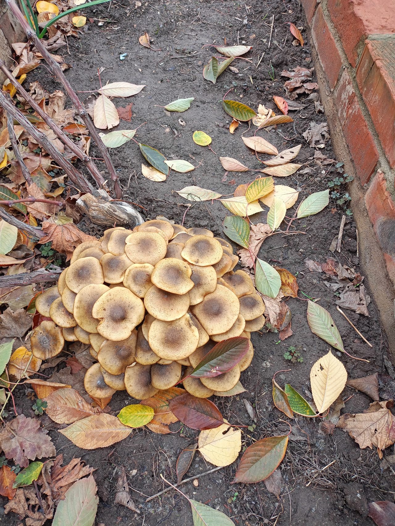 Описание гриба: Грибы выросли на даче у корня винограда и абрикоса. Собрала целое ведро. Запах приятный грибной. Вроде похоже это опёнок, но побоялась оставить выбросила