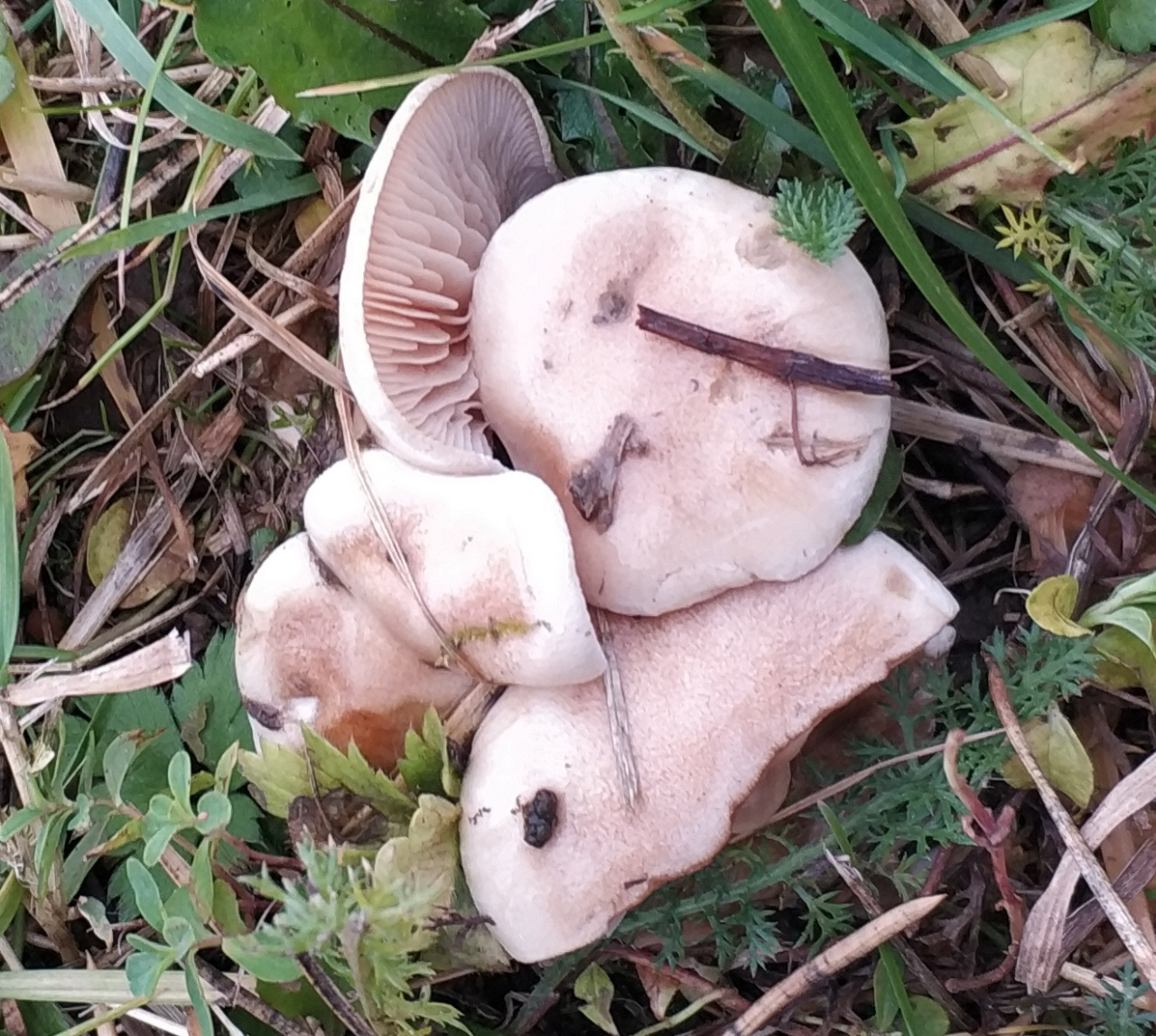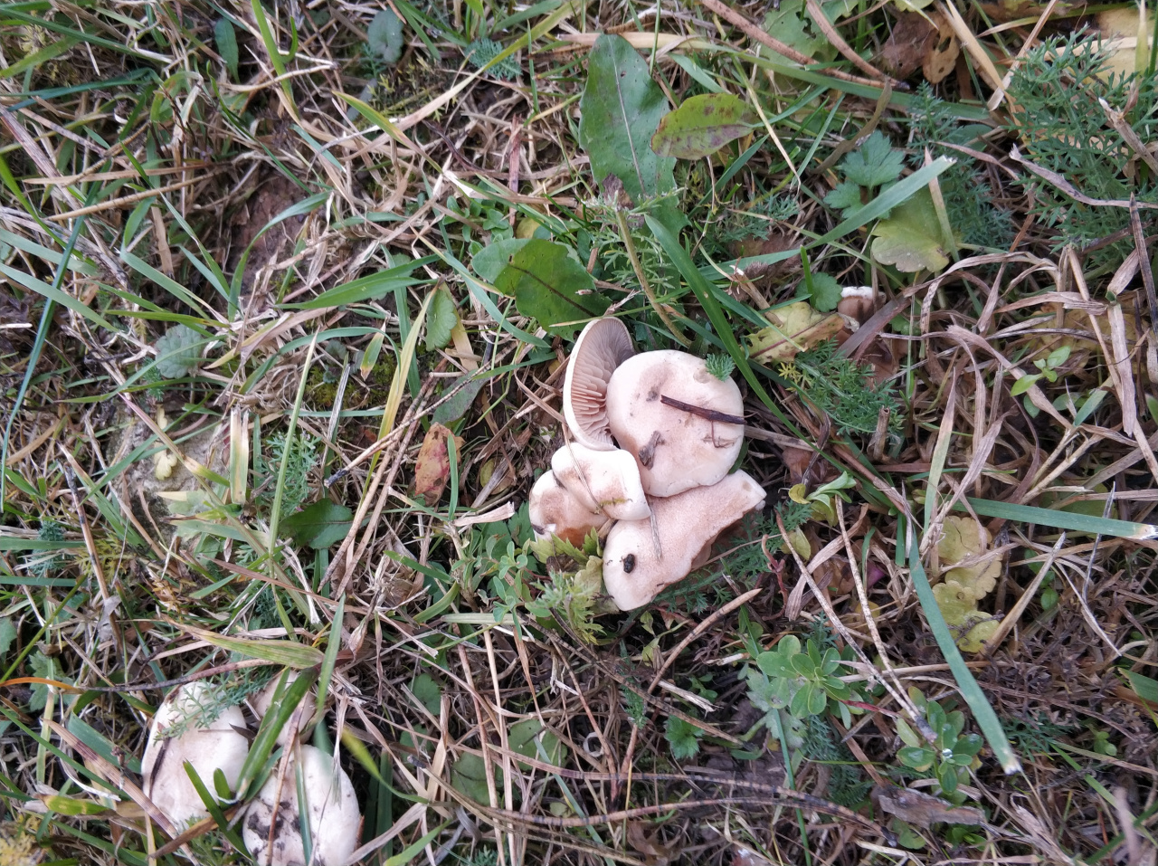 Описание гриба: Мясистый, и шляпка грязновато-белая, пластинки белые. Растет группами, сросшиеся как будто. Нашла на поле.