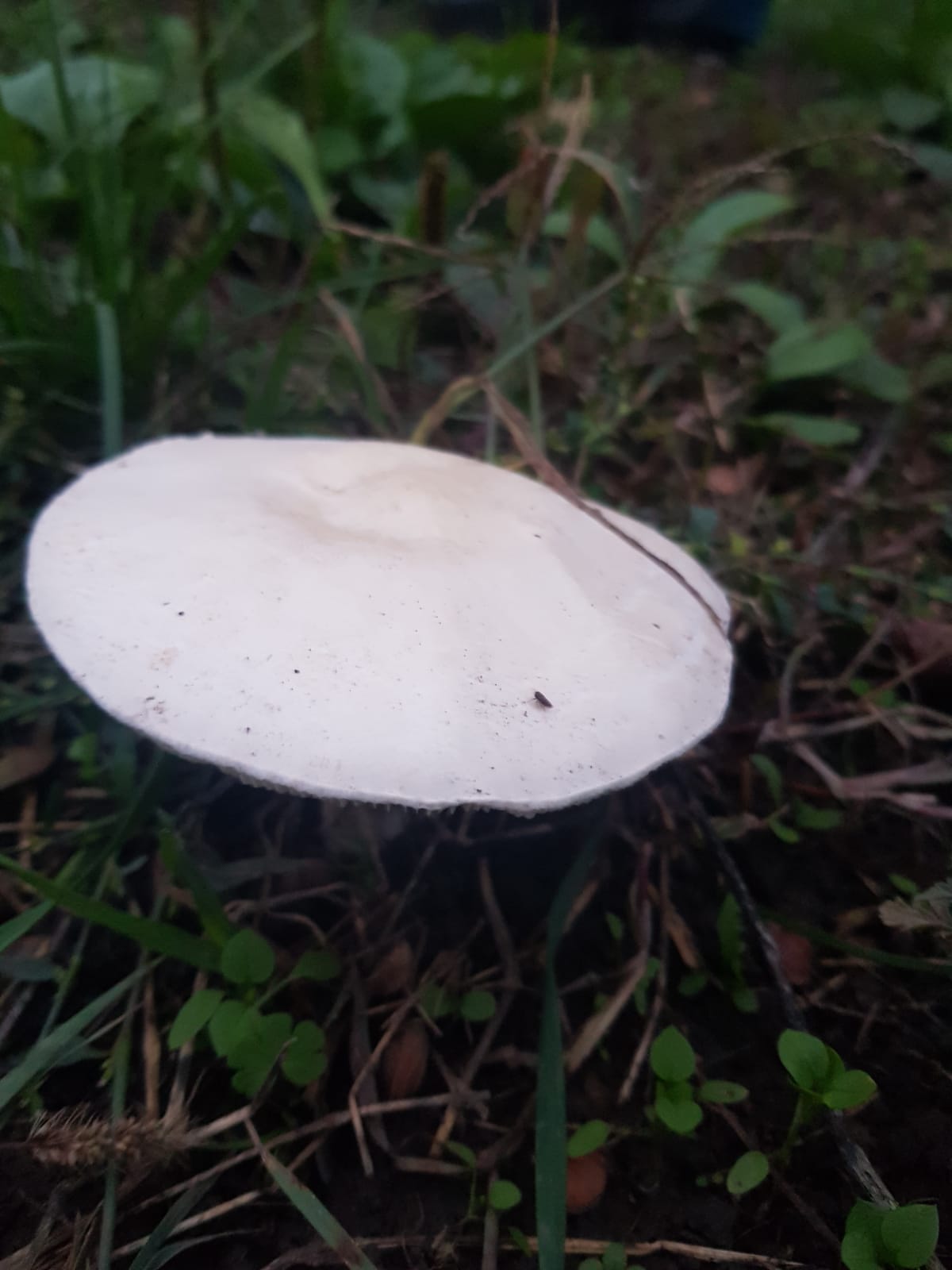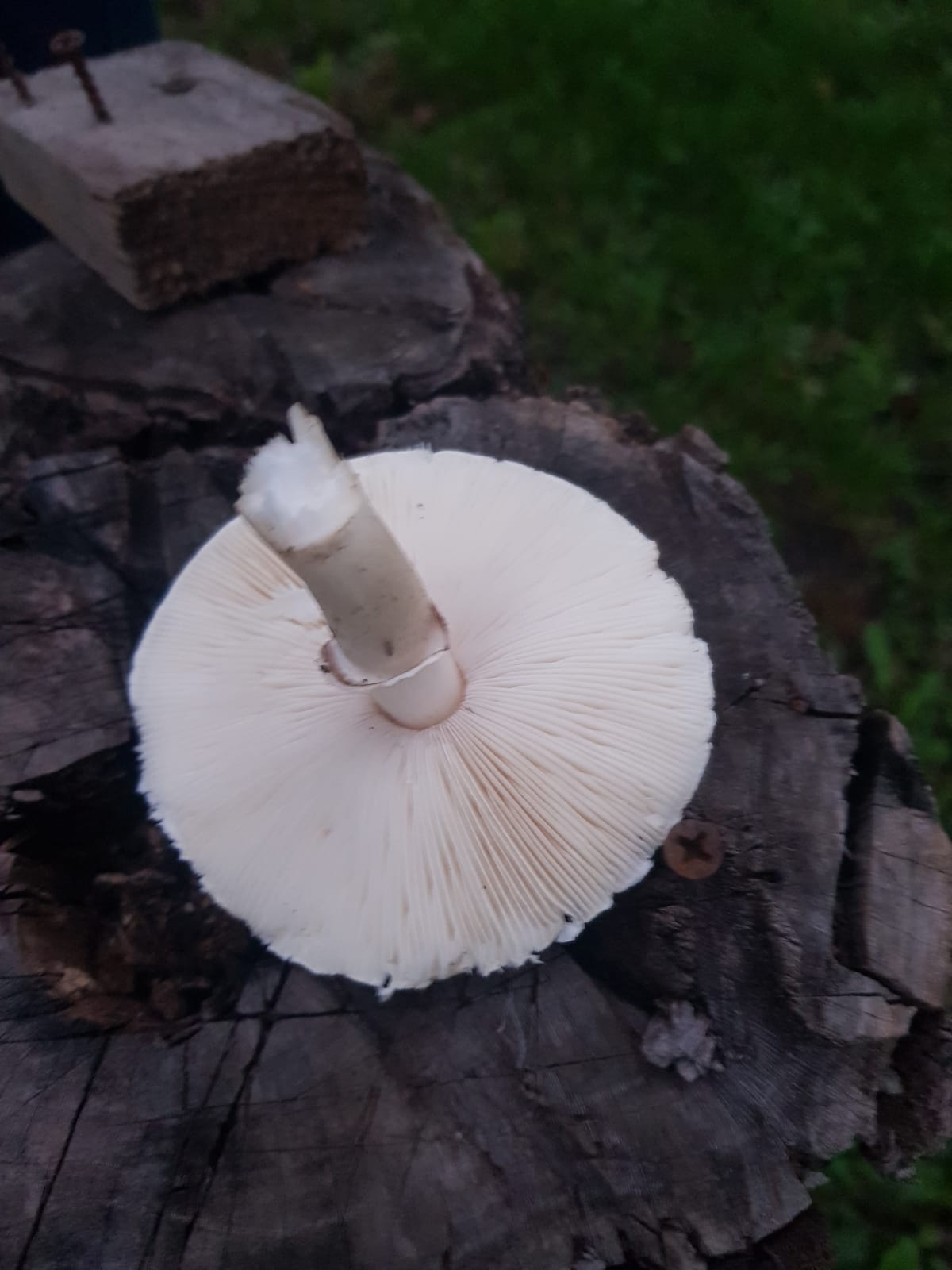 Белошампиньон краснопластинчатый, если не было вольвы у основания ножки.
