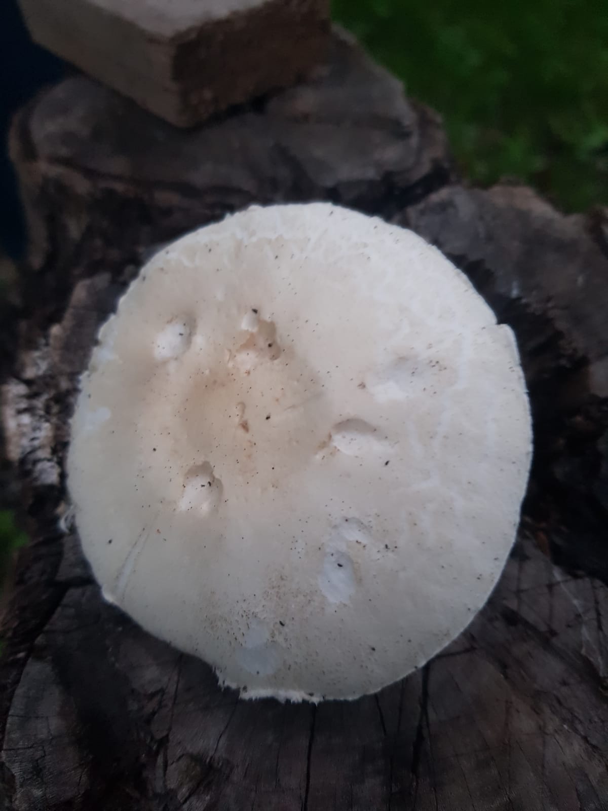 Описание гриба: Вырос на огороде. На месте старого сожженного пня алычи. Пахнет грибами.