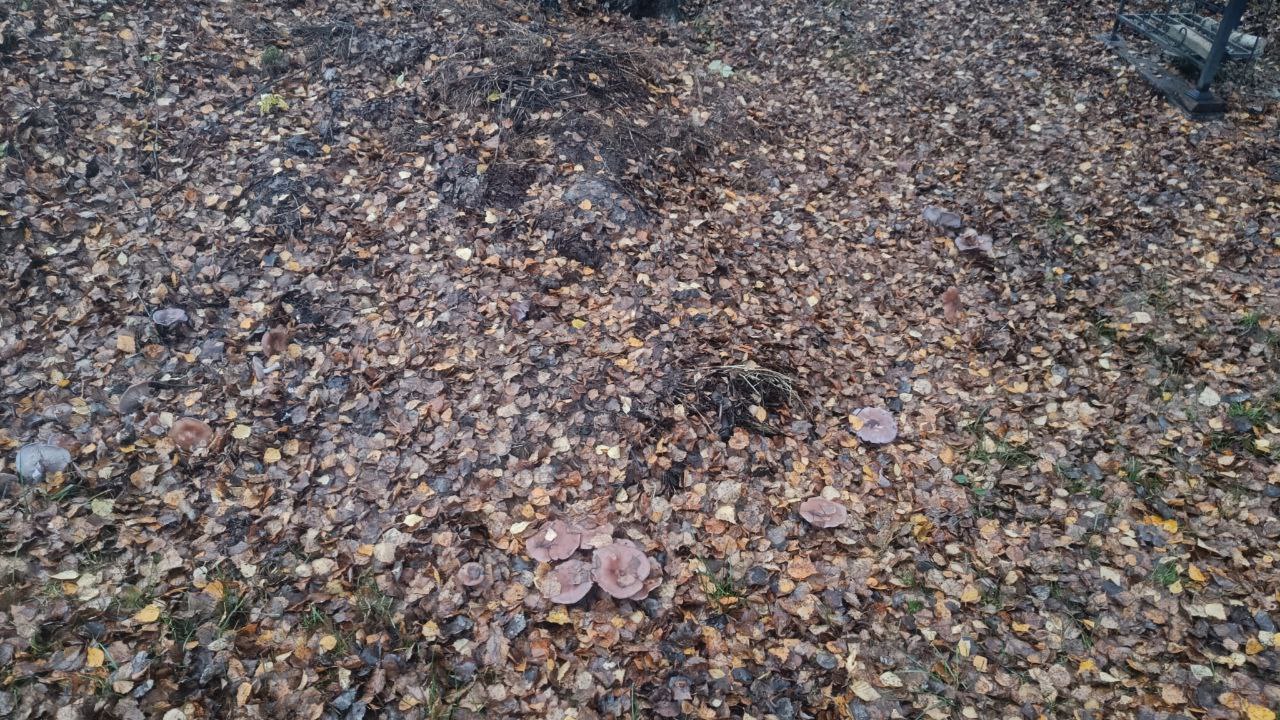 Описание гриба: Уважаемые эксперты, подскажите пожалуйста, Московская область, под Чеховым, на дачном участке, сейчас, в конце октября, на улице +5 +10.