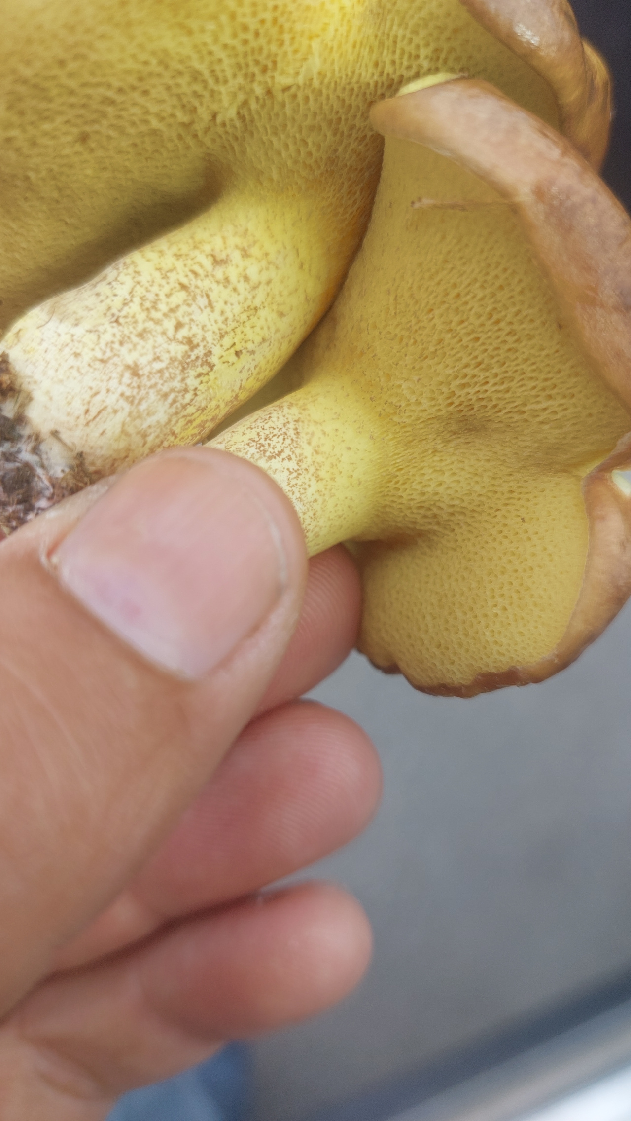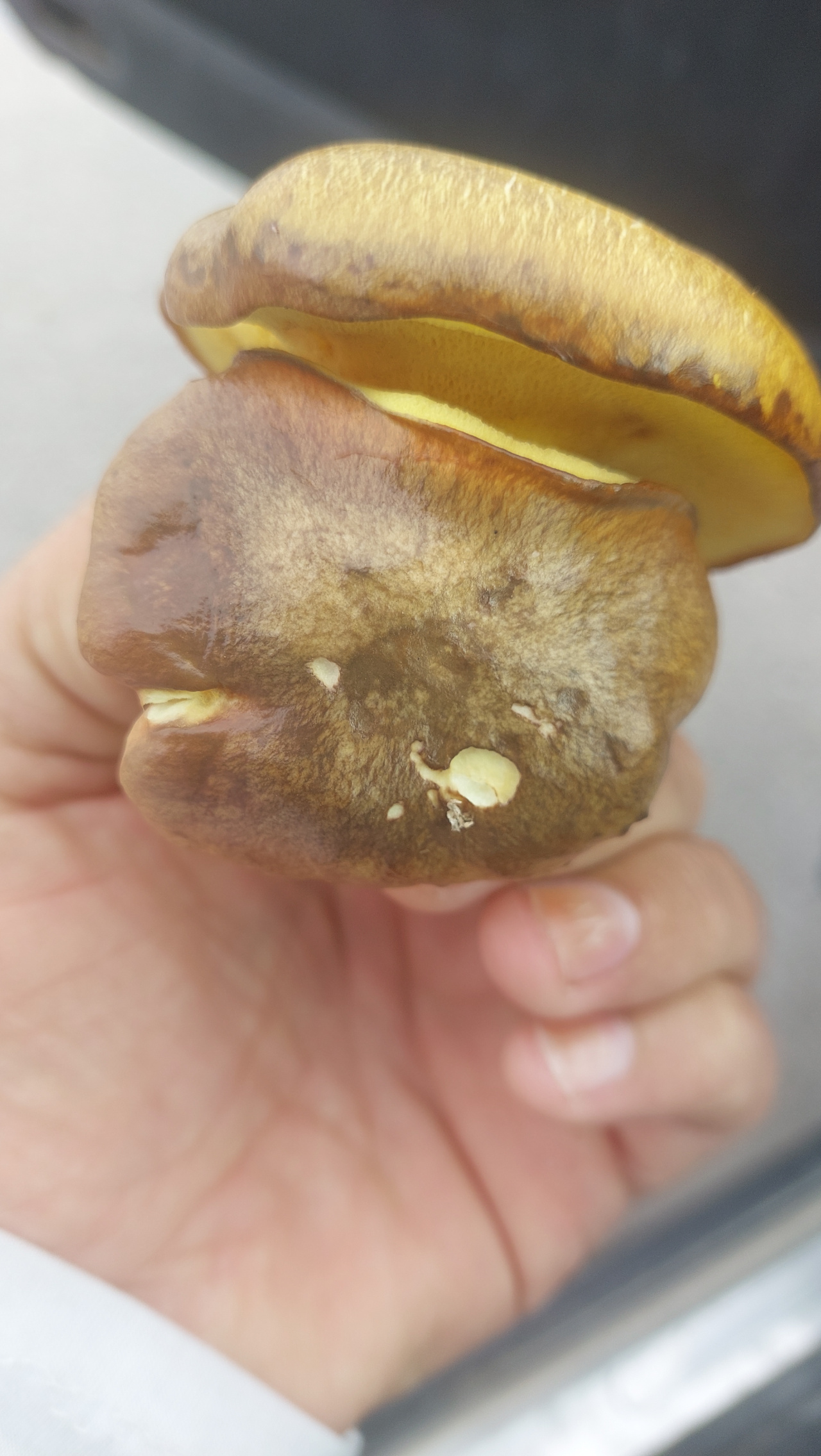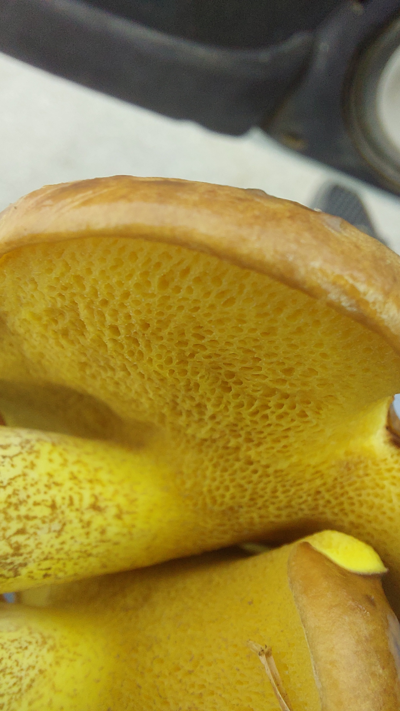 Описание гриба: верх коричневатый, низ желтоватый ячеистый