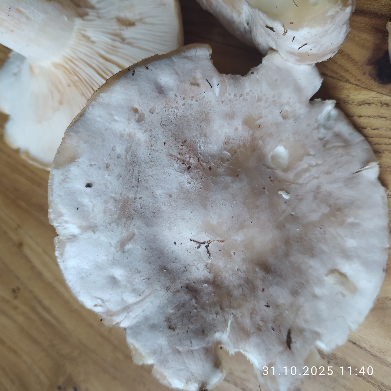 Описание гриба: Вылитая дымчатая, только мякоть белее и цвет белее. Притащила домой, потом засомневалась. Вдруг восковатая? Или таки дымчатая форма белая? Росла там же, где и дымчатая — на стыке лиственных и хвойных. Есть не буду, только разобраться. Может сварить? запах у дымчатой узнаваемый )
