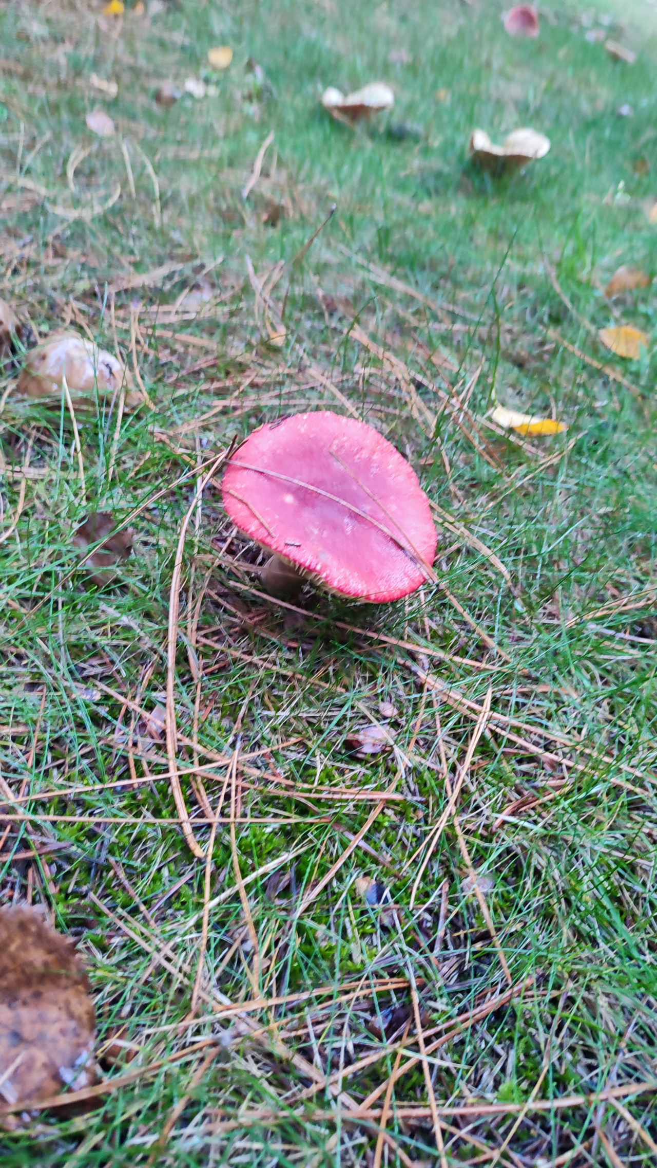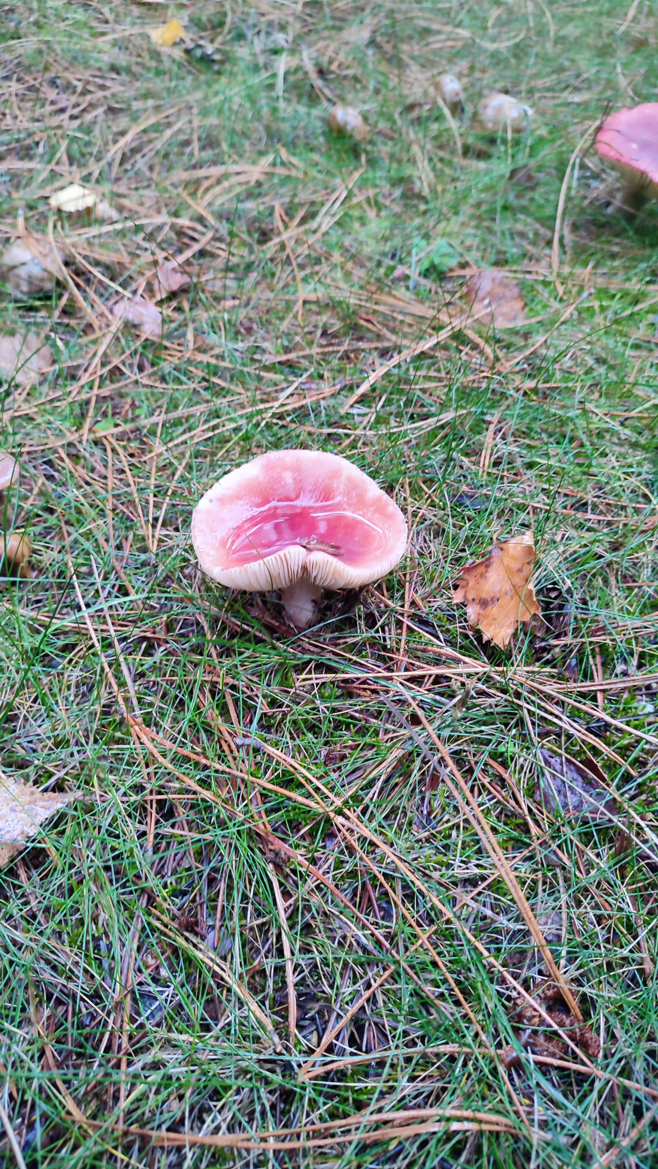 Описание гриба: Подскажите что за грибы, растут рядом с соснами. Красные шапки.