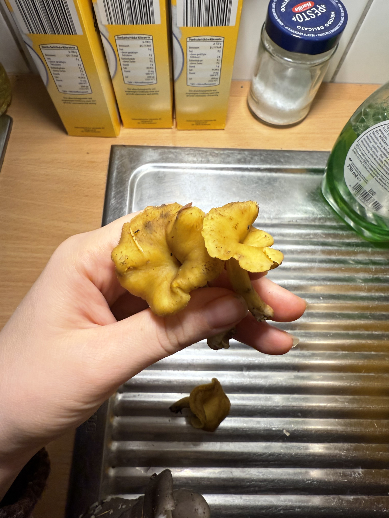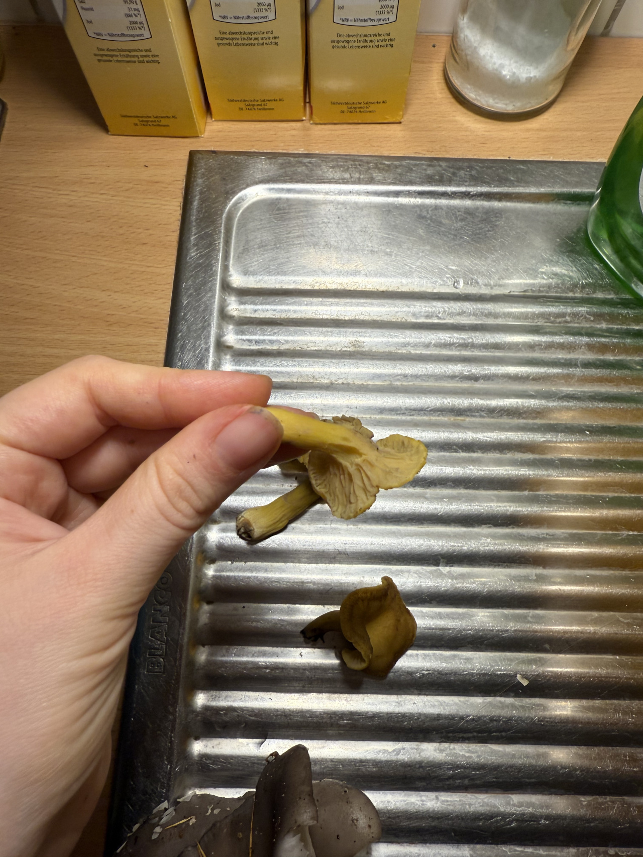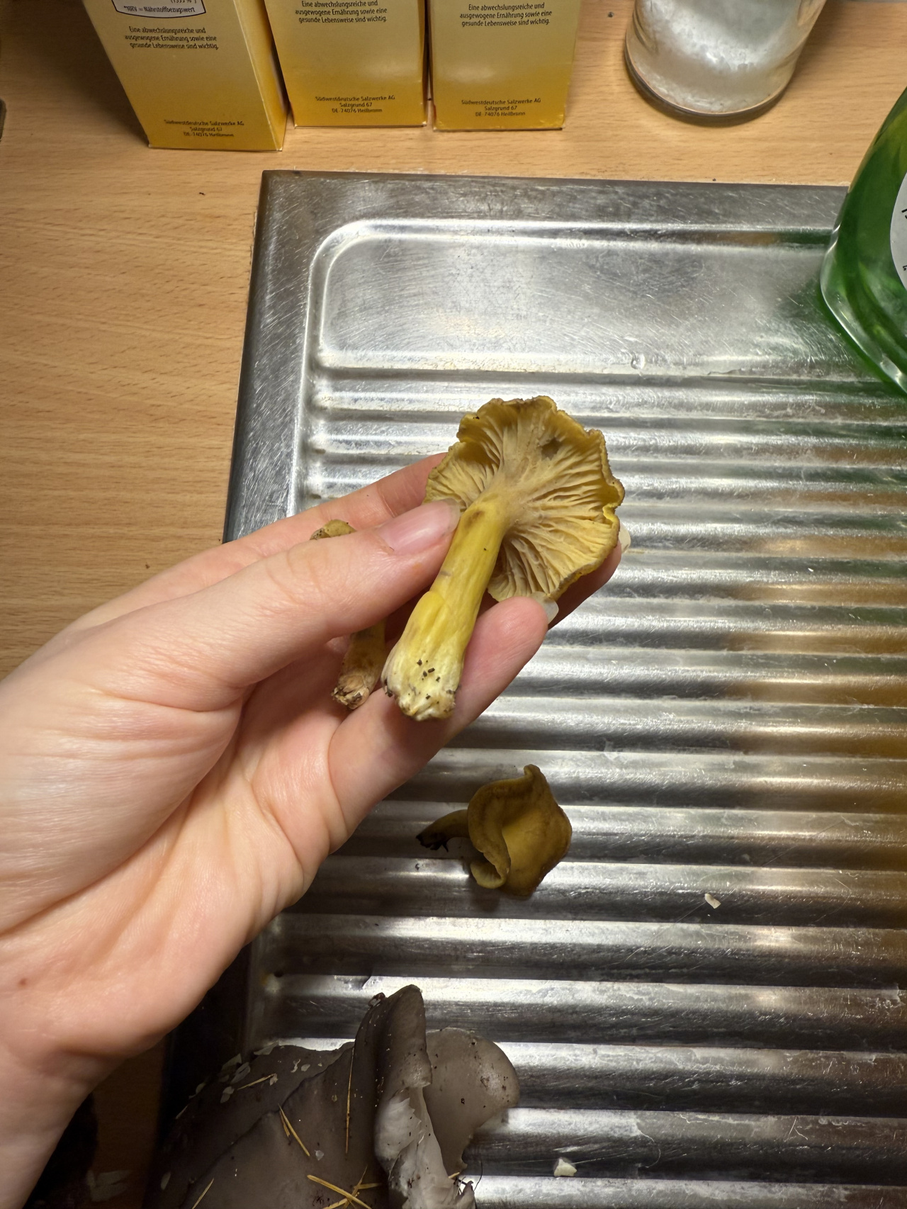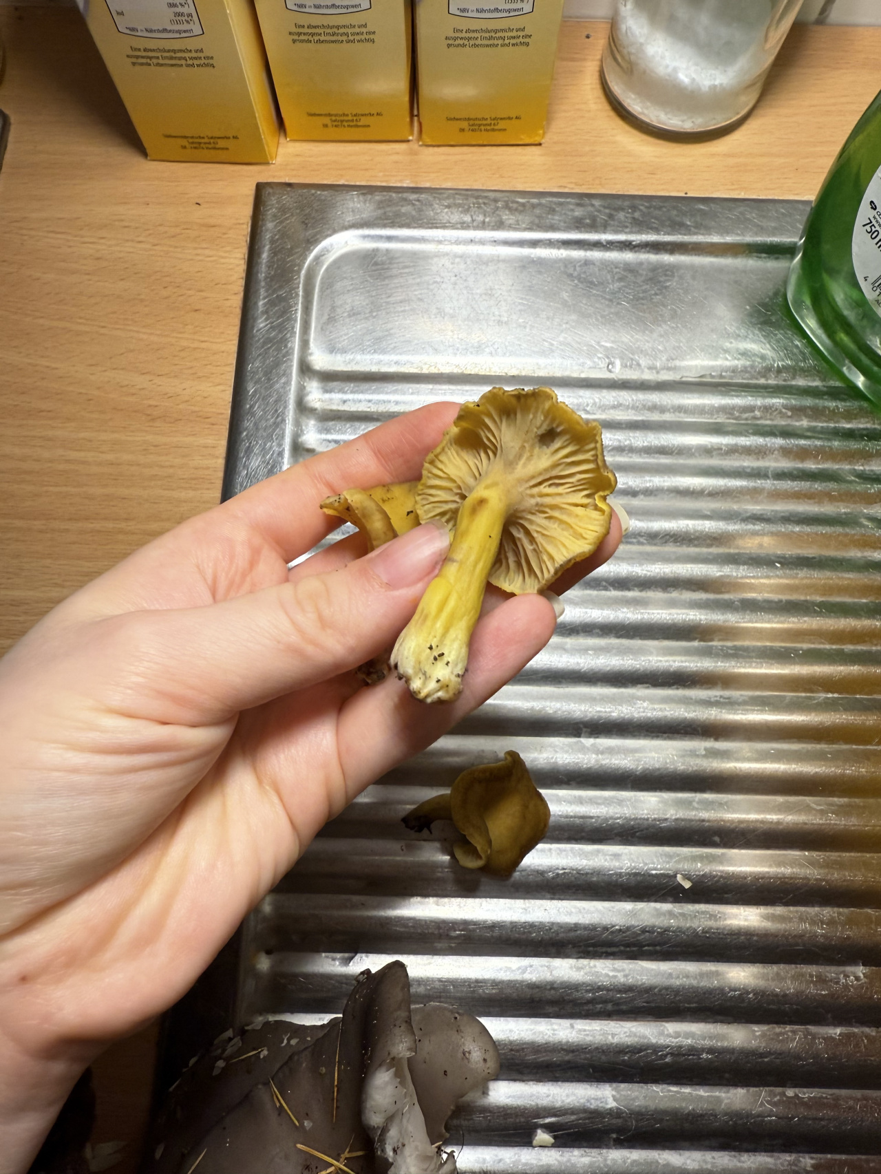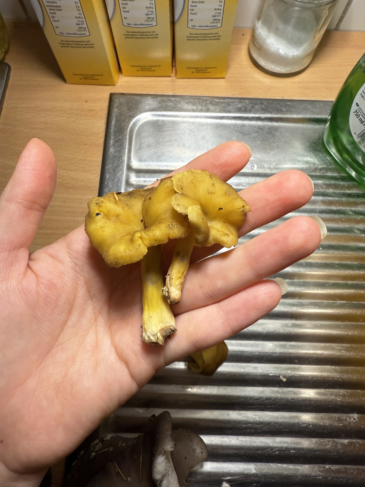 Описание гриба: рос около старой дороги в смешанном лесу. что за лисичка такая желтая? гораздо менее рыжая, точнее вообще не рыжая. не пойму это большие экземпляры трубковидной или желтеющей?