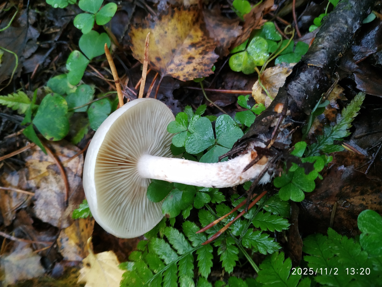 Описание гриба: Увидела сегодня такое чудо. Лес смешанный, преимущественно хвойный. Дмитровский район. На шляпке «силиконовая» кожица, как у мокрухи. Цвет не меняет при срезе. Запах грибной. Пластинки белые. Растут по одиночке и группами. Под деревьями и на полянках, какие- на гниющих ветках прям, остальные не проверяла. Что это может быть?