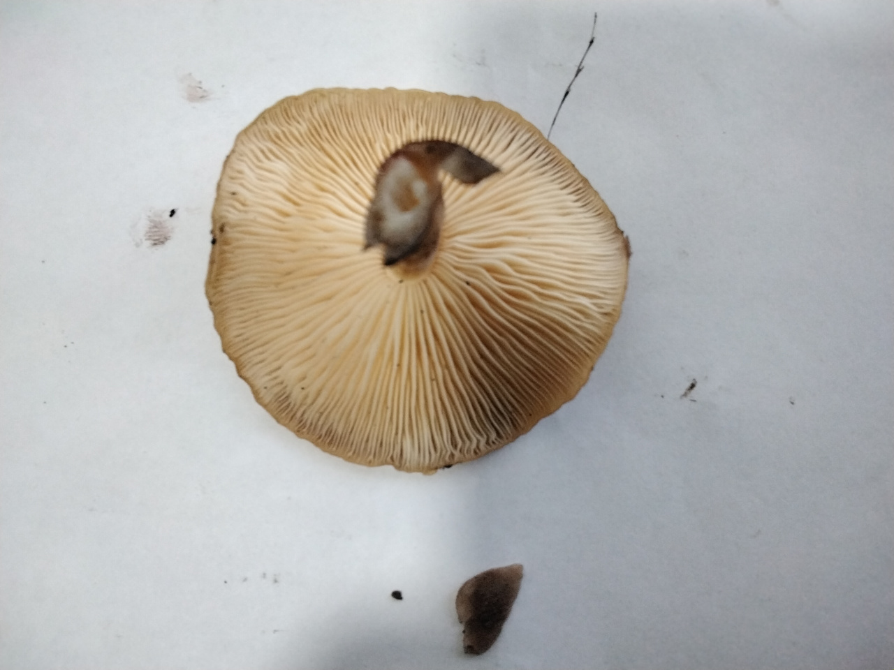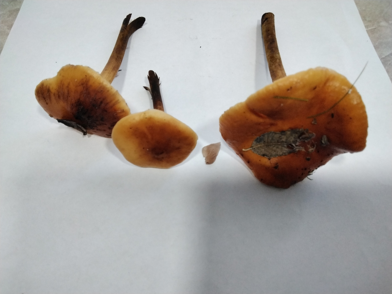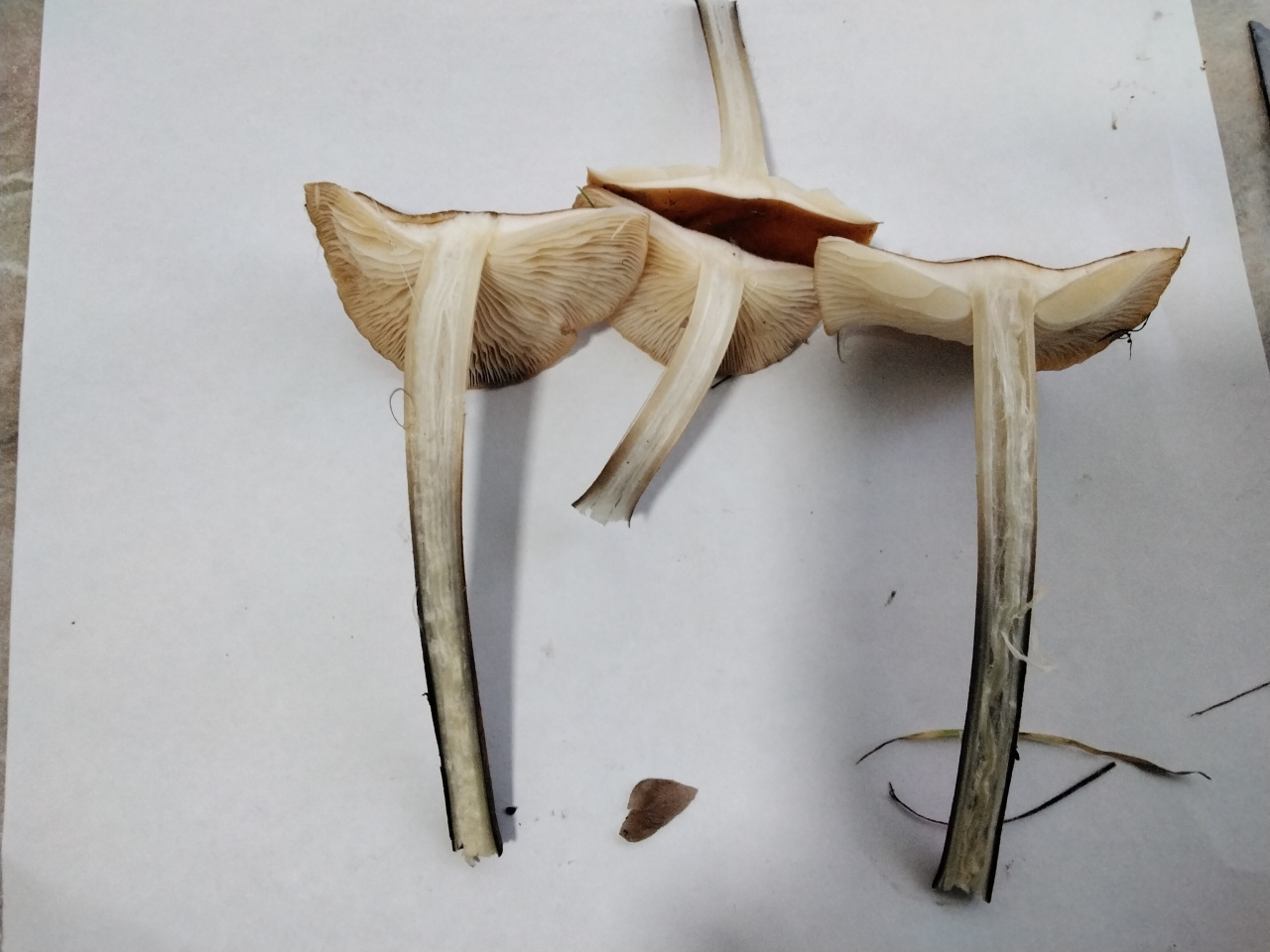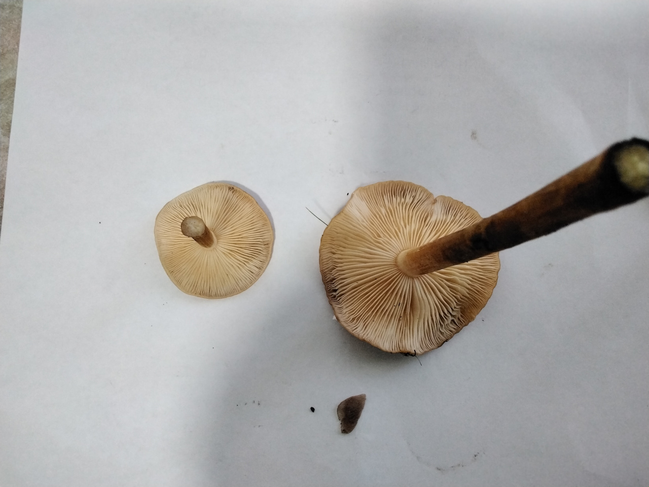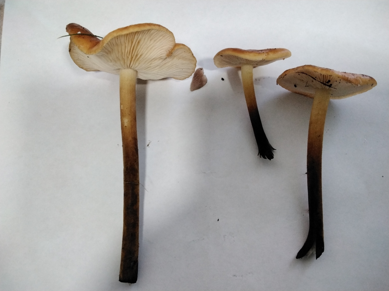 Описание гриба: Найден в лиственном лесу под вязом.РОсли скученно.Шляпка ярко коричневая с оранжевым оттенком. Диаметр 1 — 7 см. Ножки длинные внутри полые, снизу темные сверху светлые. Внутри у более зрелых экземпляров полые. Пластинки белые. Запах приятный грибной.
