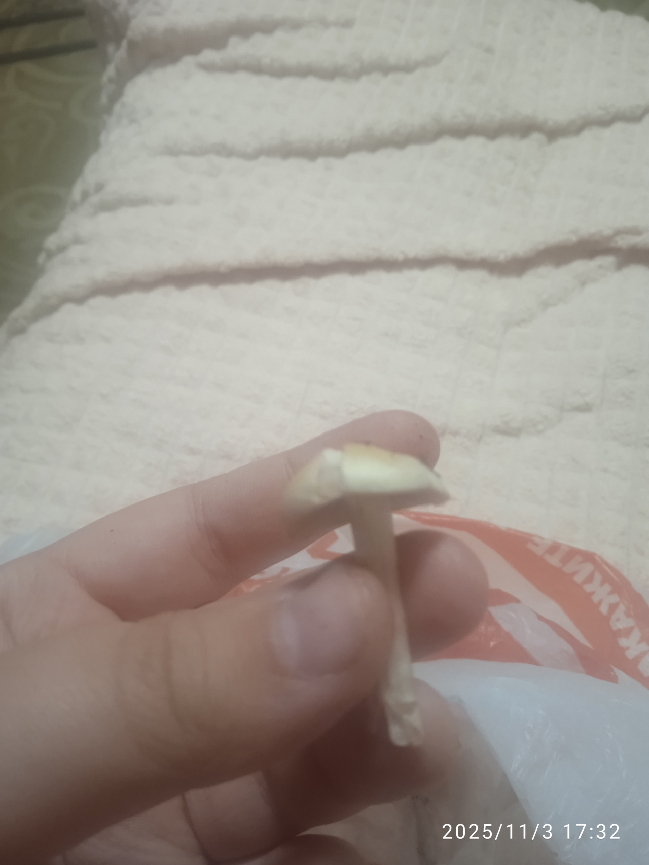Описание гриба: Белый цвет средняя ножка внутри цвет белый