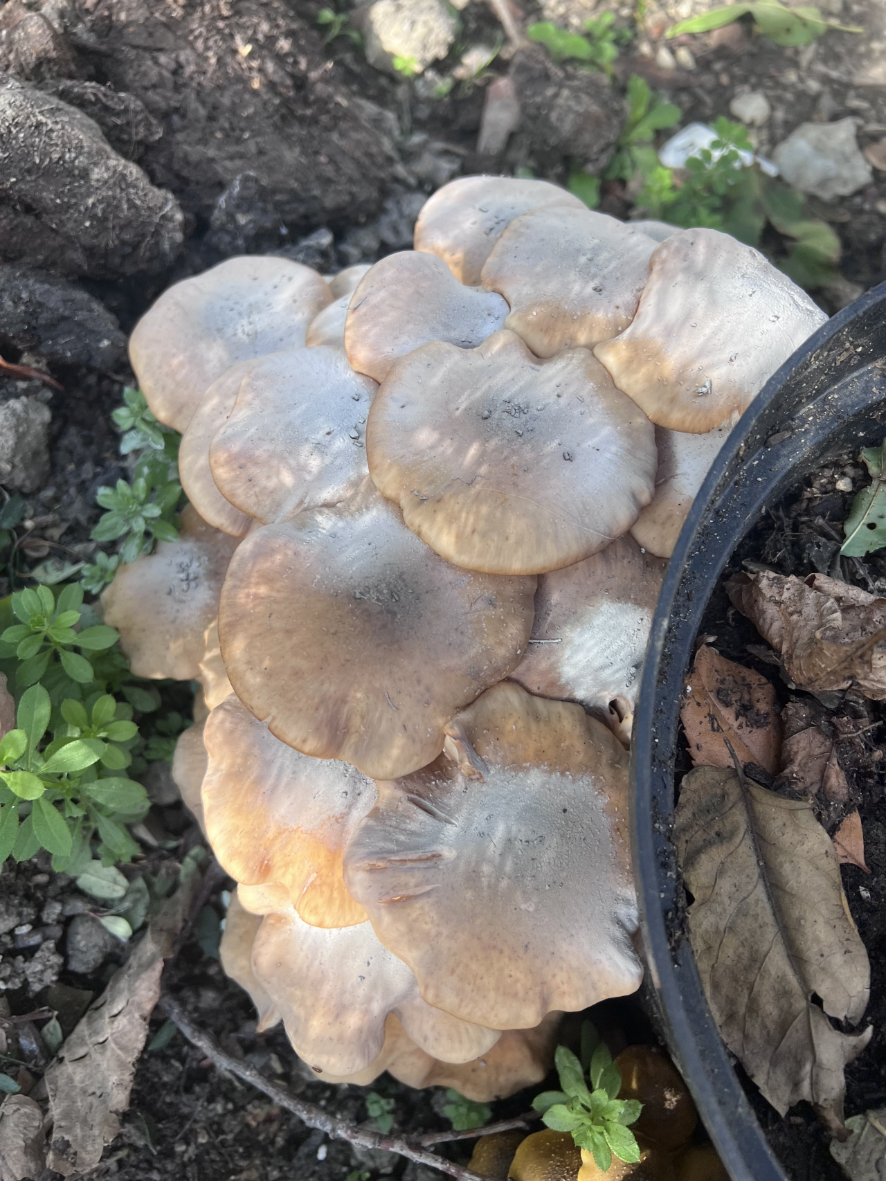 Описание гриба: Здравствуйте, выросли грибы в огороде возле дерева. В месте где скидывали остатки еды. Помогите разобраться