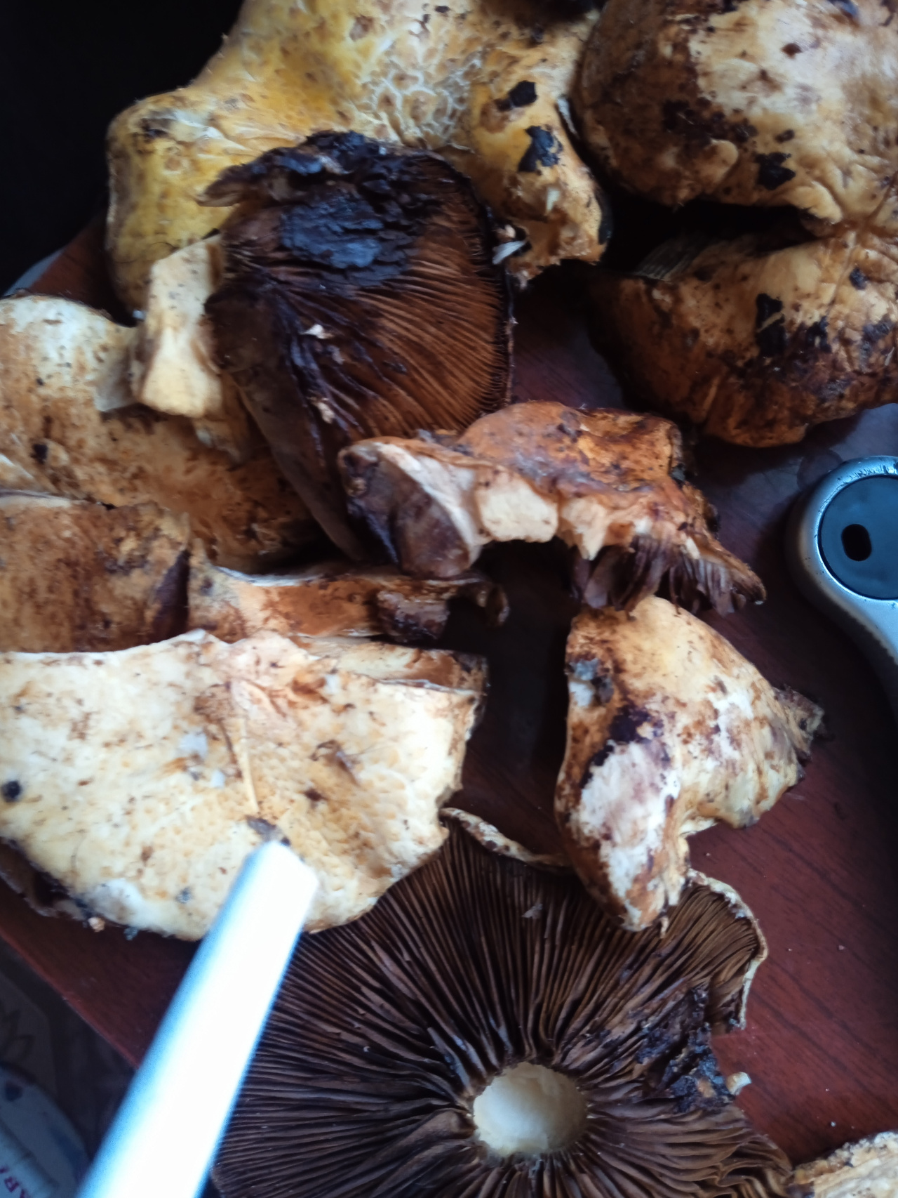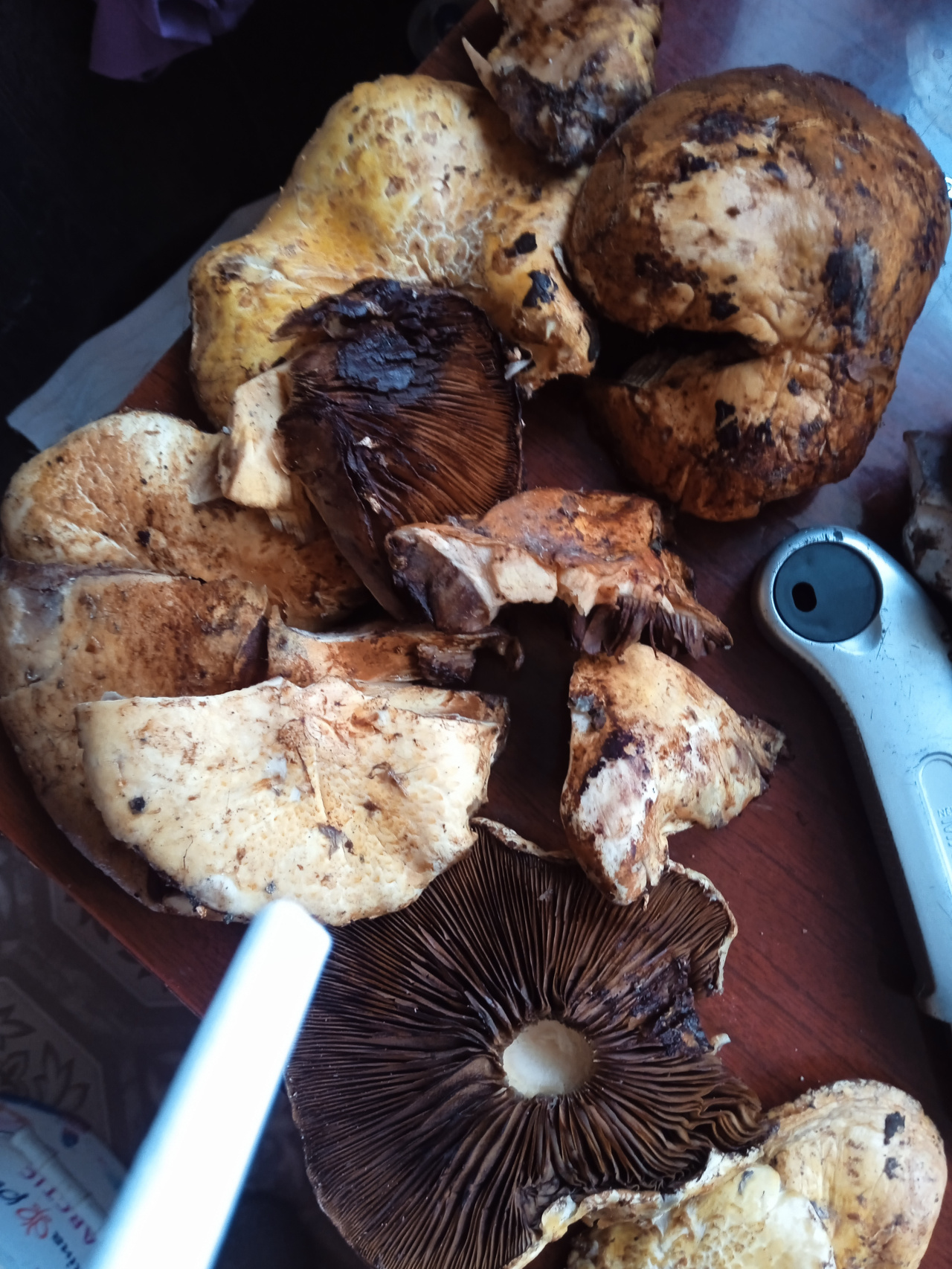 Описание гриба: Запах приятный.Собрар на дереве метра два три от земли. Растут из под коры дерева.тополь серебристый и простой тополь..цвет жёлтый с верху .низ Кричневатый.при нажатие на срез цвет не меняет