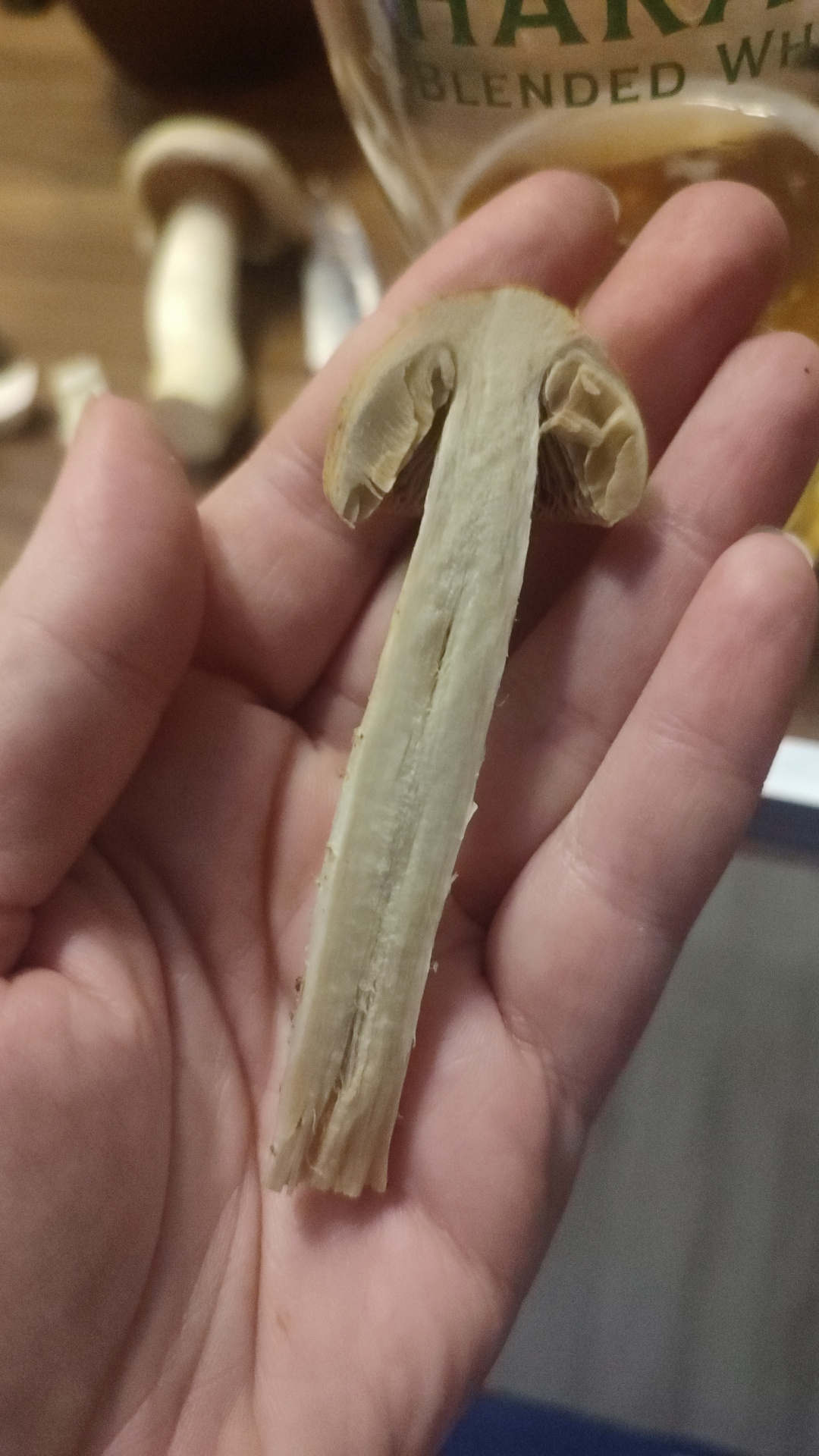 Описание гриба: Смешанный лес, запаха нет совсем, растут семьями, цвет не меняет, единственное ножка обветрилась и стала темнее, была абсолютно белая, с чешуйками.