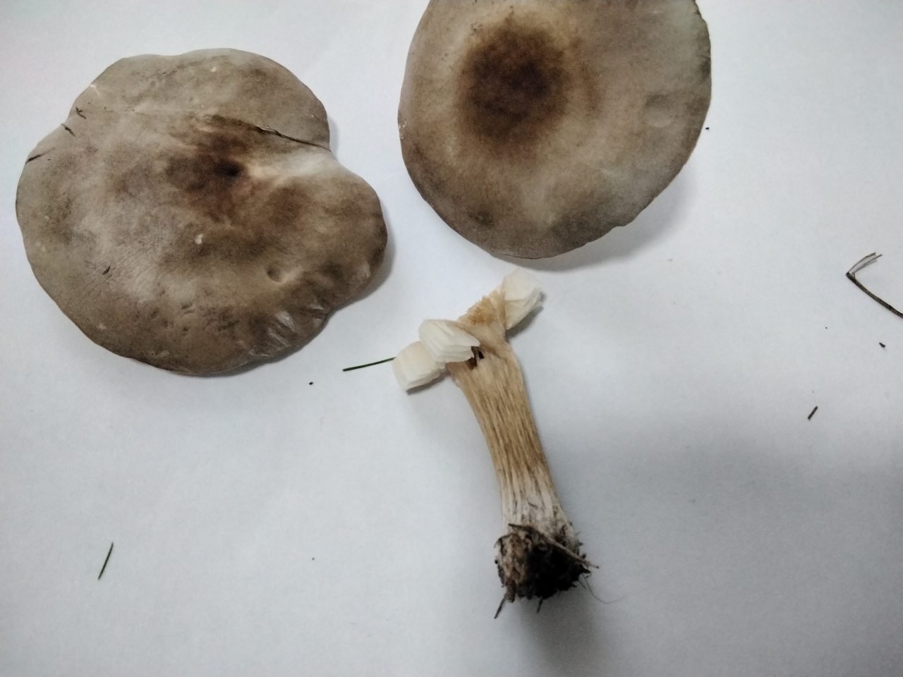Описание гриба: Найдены в степи на открытом пространстве. Растут по отдельности недалеко. Шляпка в сырую погоду коричневая, в сухую светлеет в центре более тёмное пятно. Ножка 3-5 см., короткая. Пластинки белые.