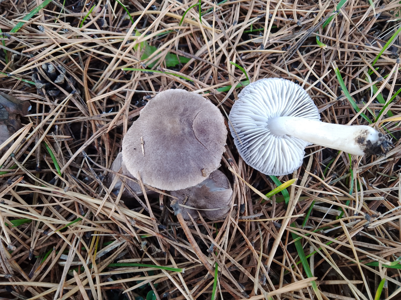 Боюсь перепутать с заострённой рядовкой. Хотя, вкус — обычный грибной, без горечи. И заострённые вроде растут среди елей, а не сосен.