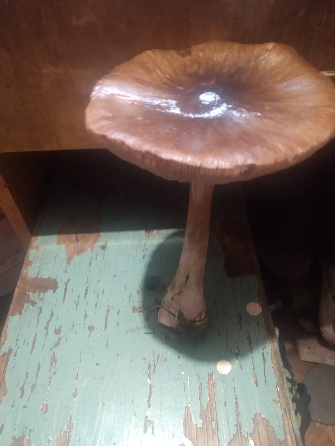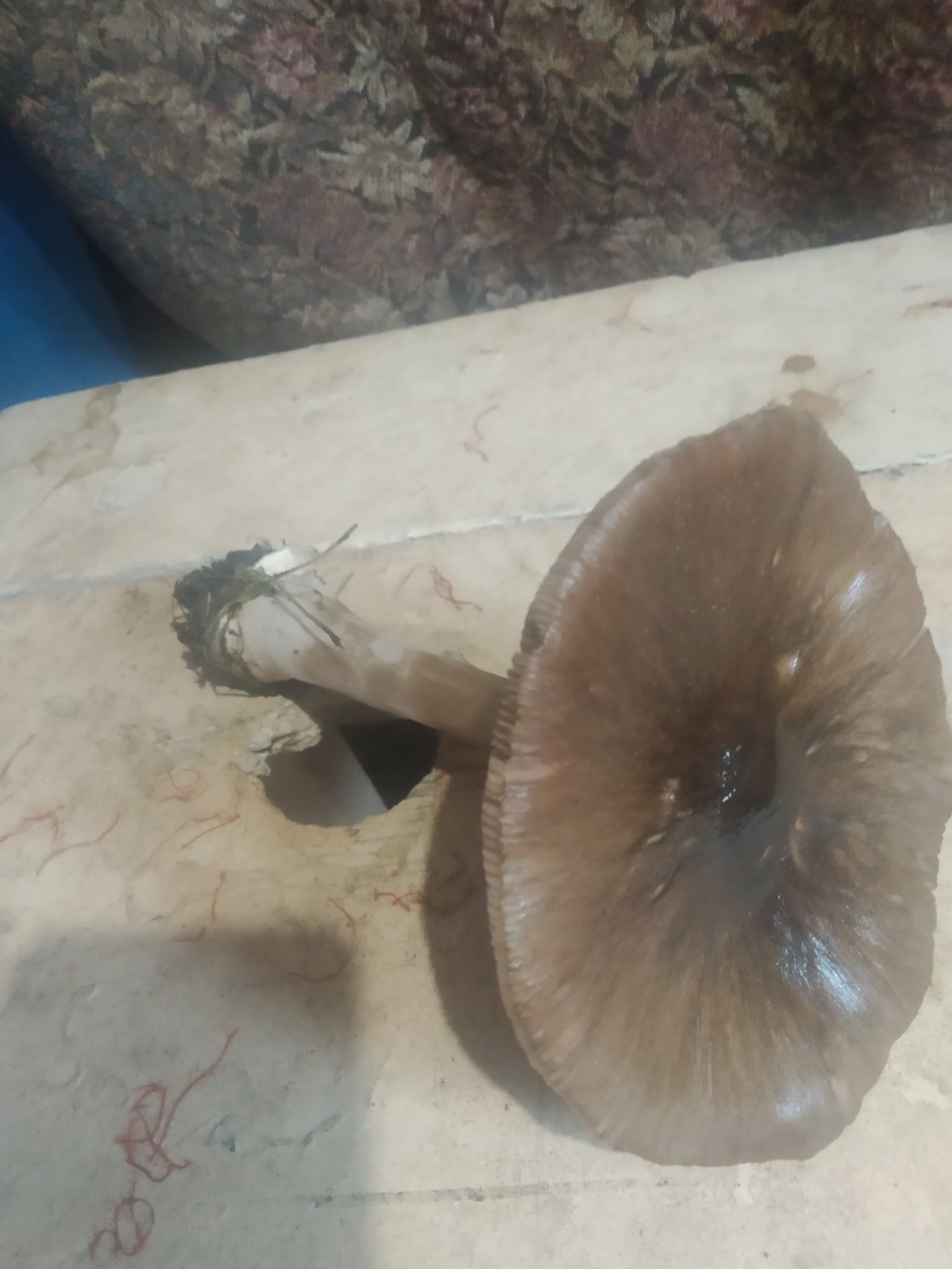 Описание гриба: Светлого коричневая шляпа, белая ножка,