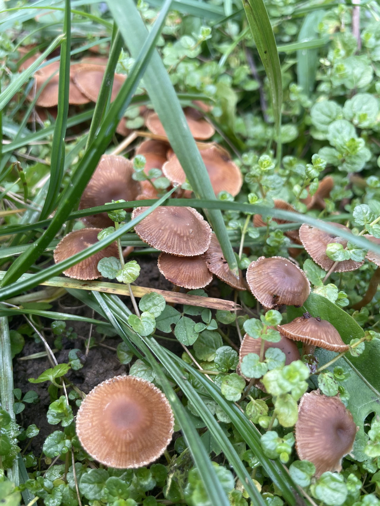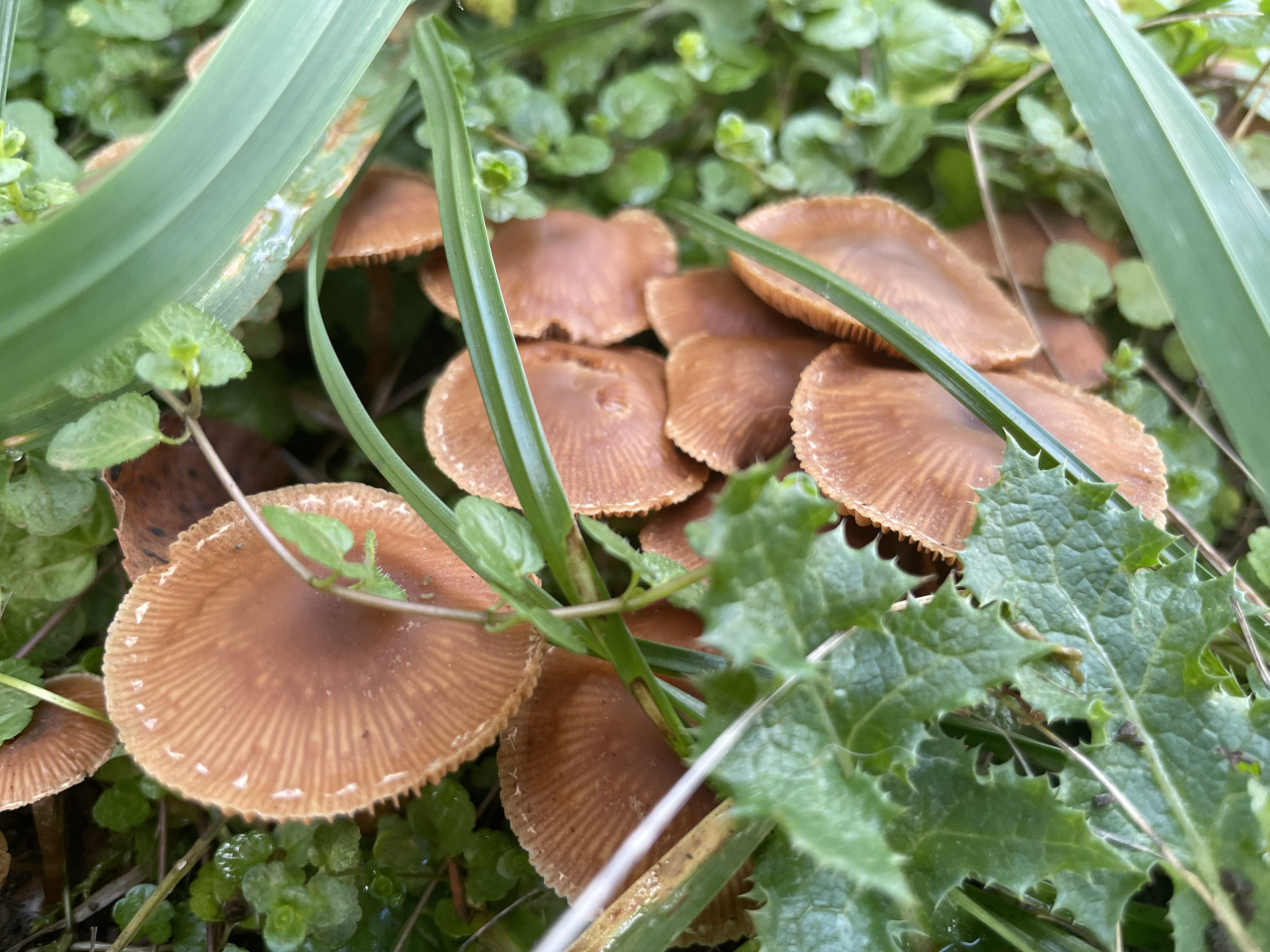 Грибы похожи на тубарии — тогда они должны расти на древесных остатках Если же просто на почве, то могут быть теоретически какие-нибудь наукории…