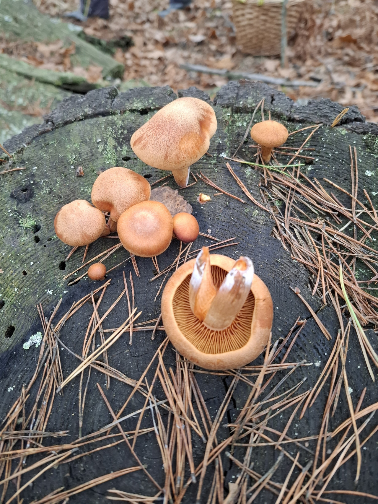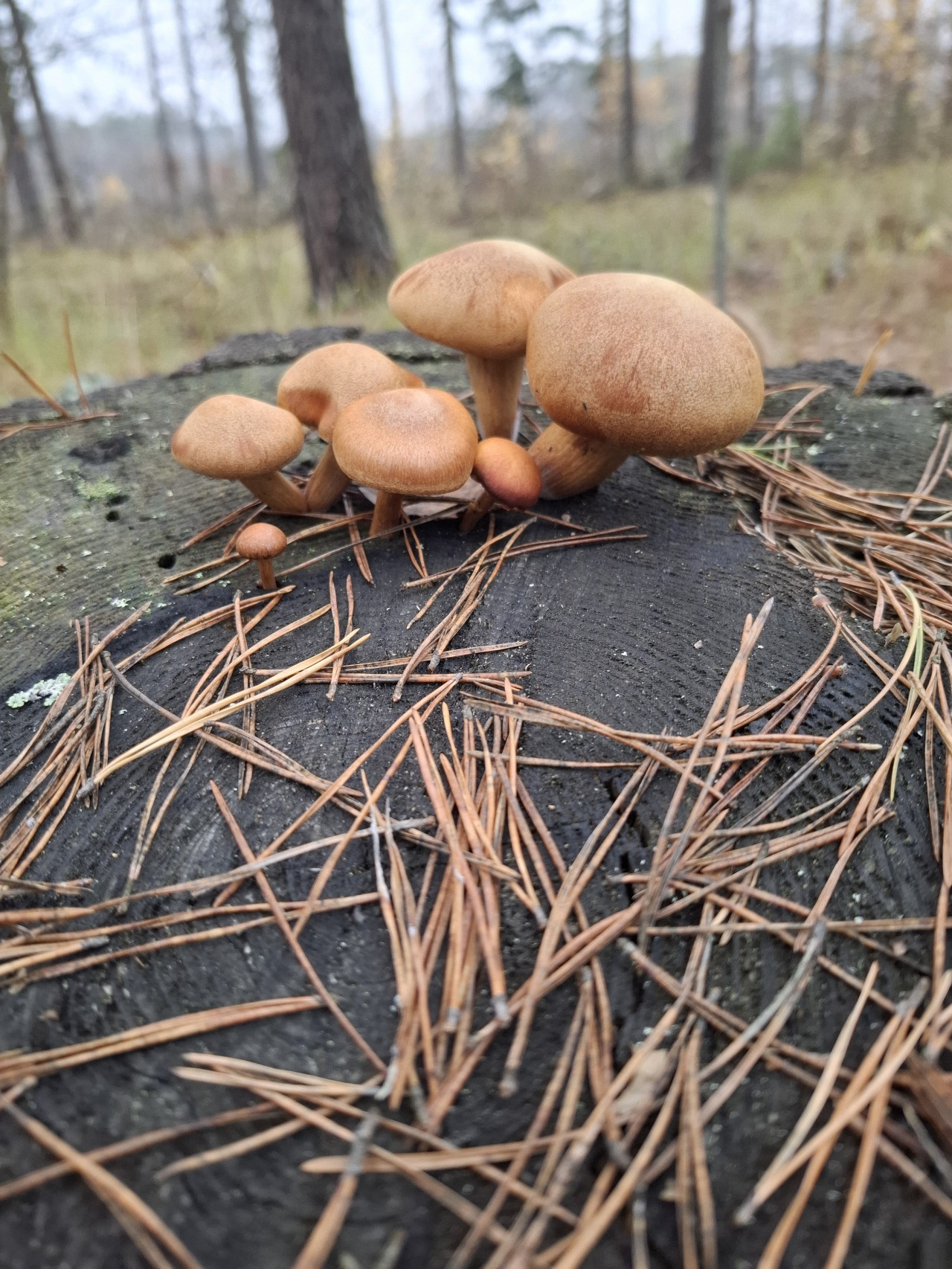 Описание гриба: Гриб найден в смешаном лесу под Гомелем. Растет на пне и вокруг, похож на какой-то опенок. Но очень гладкий и плотный.