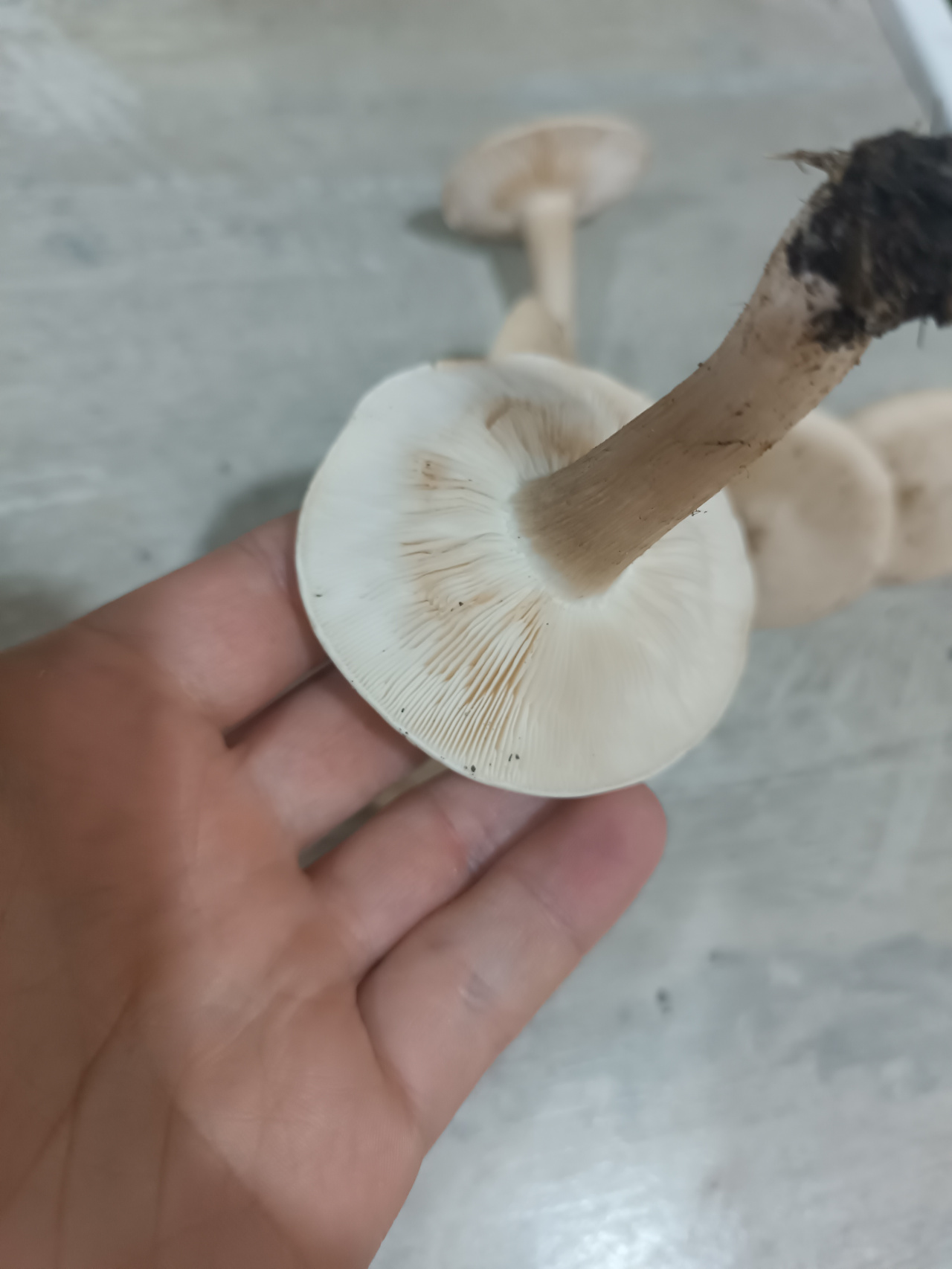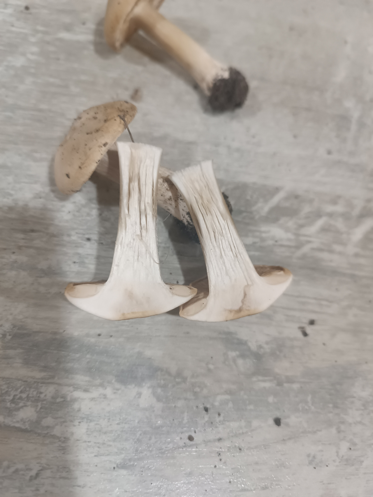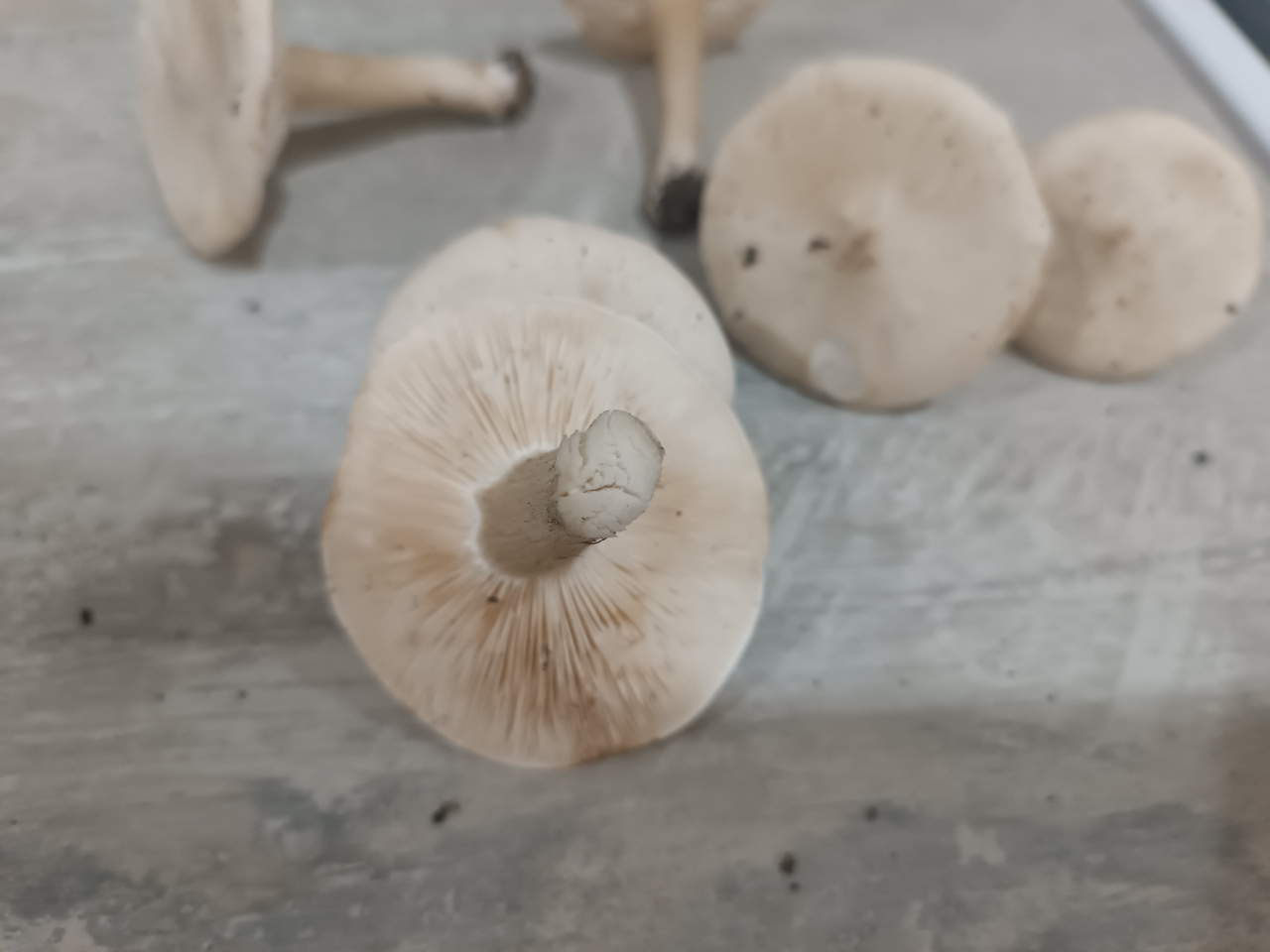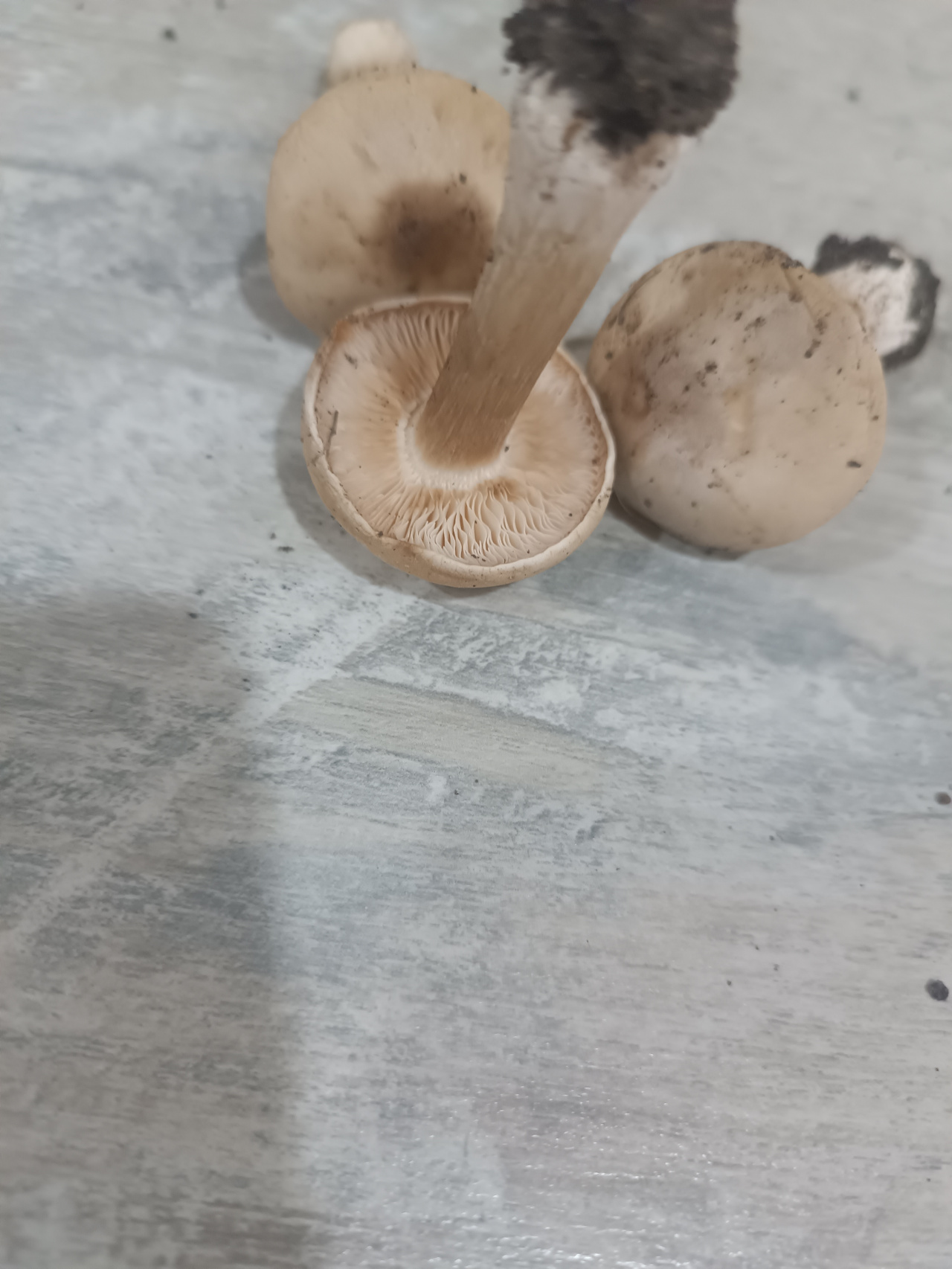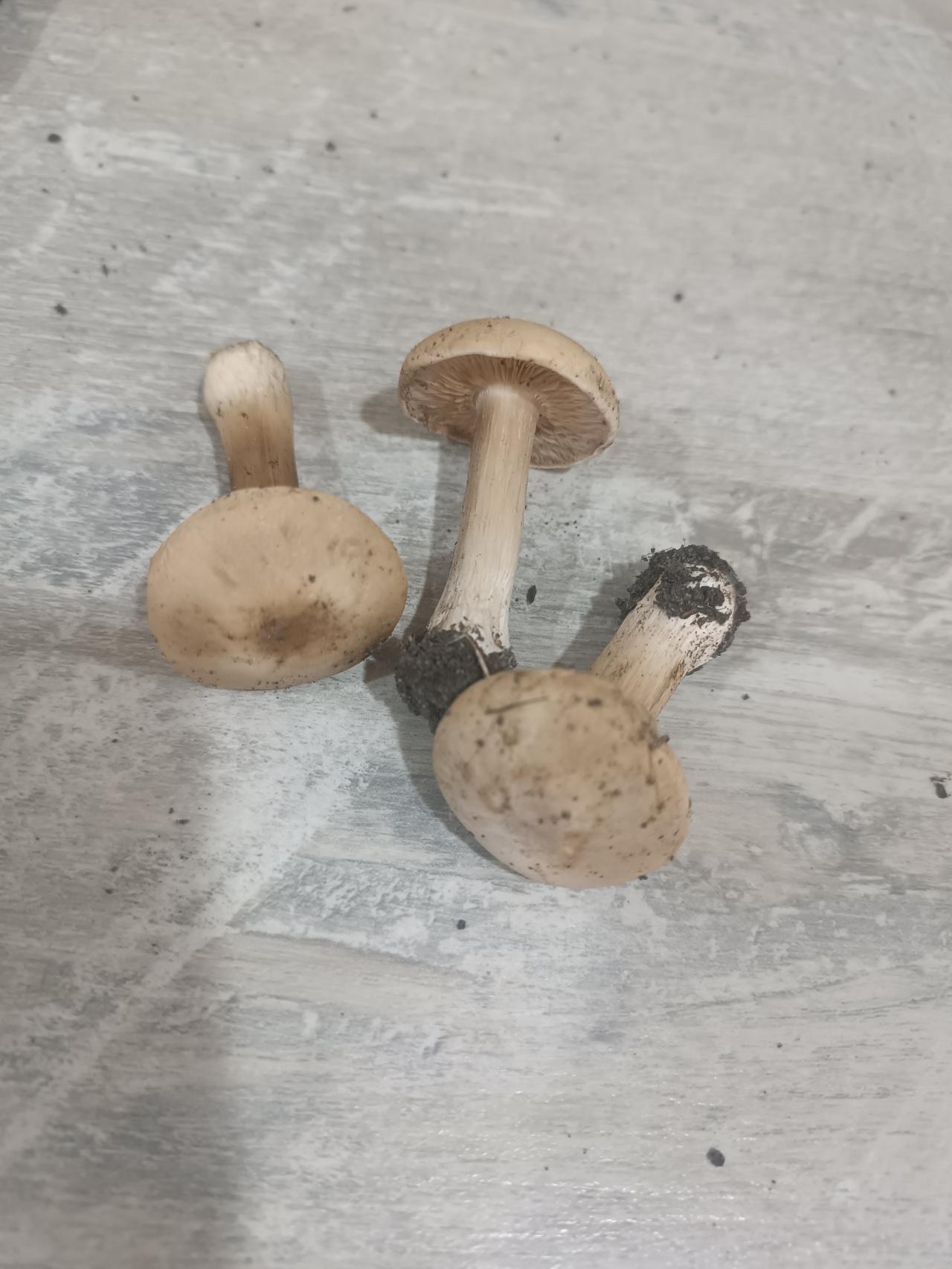 Описание гриба: Нашел в саду под фундуком в траве и листьях. Запах слабый грибной. Мне кажется, что это один вид, так как росли в радиусе 1 метра, но 3 шт сорвал в один день, а 6 — в следующий