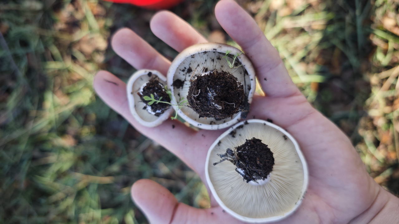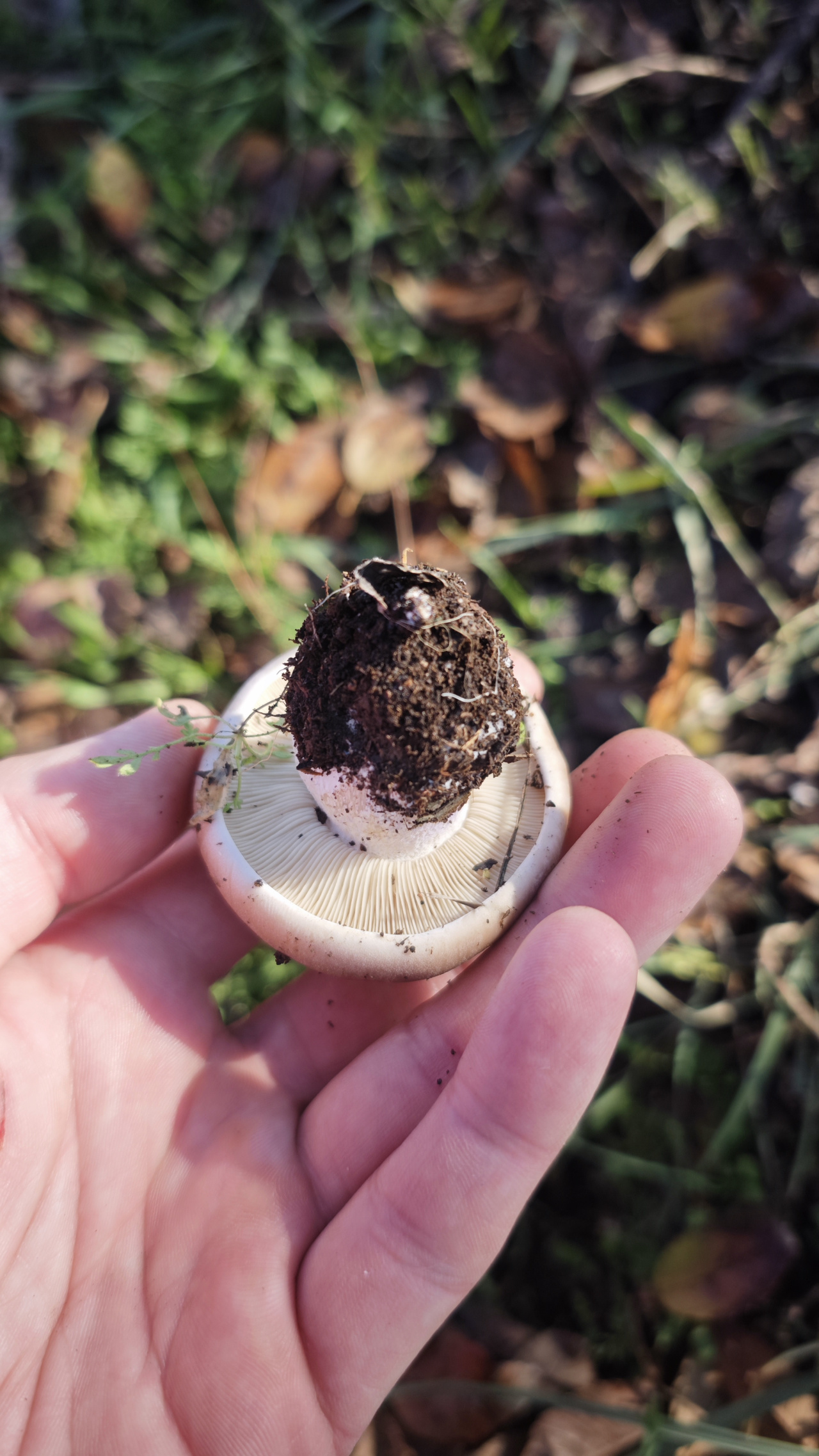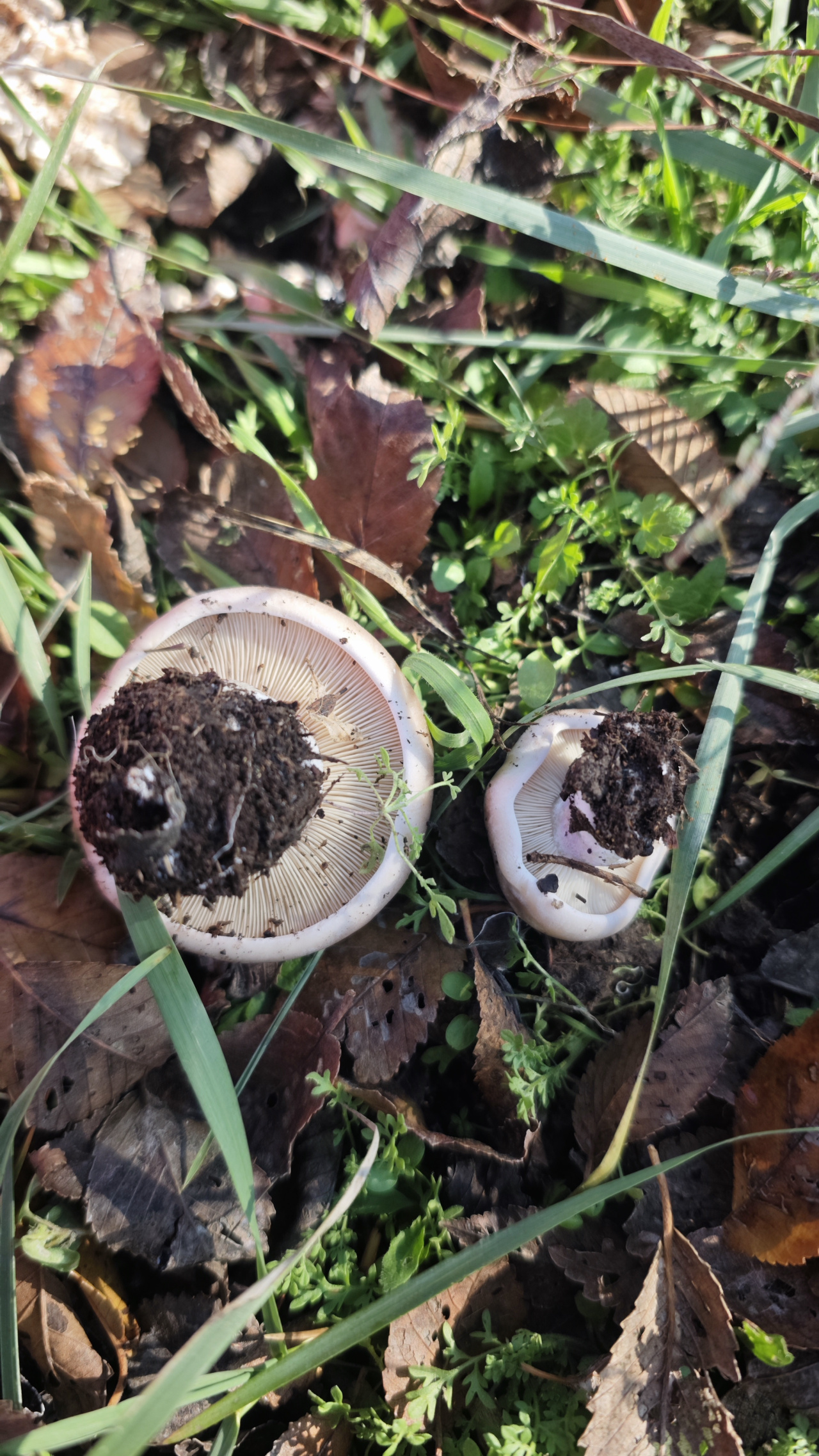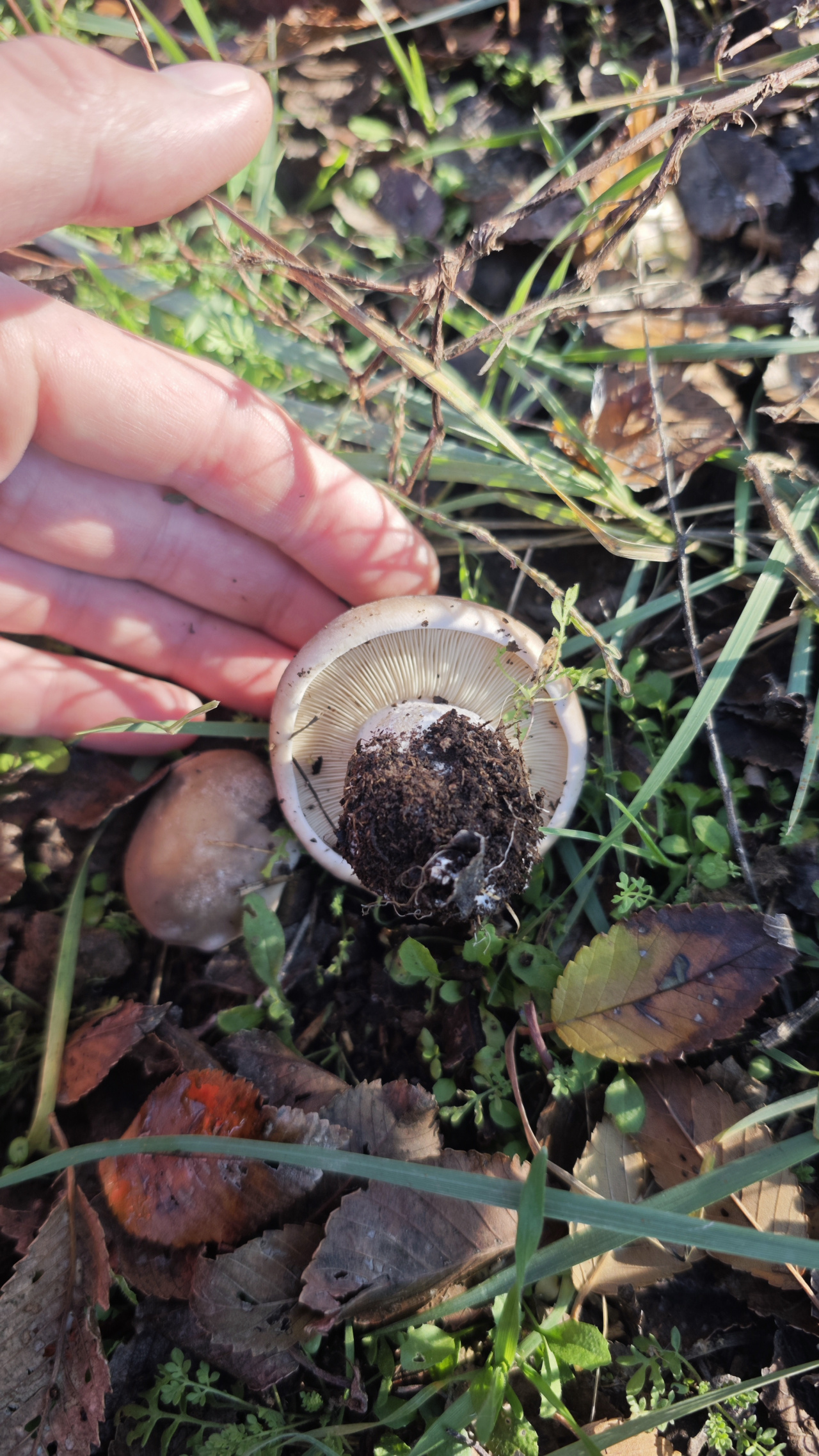 Описание гриба: Кусок леса в поле. Пластинки желтоватые