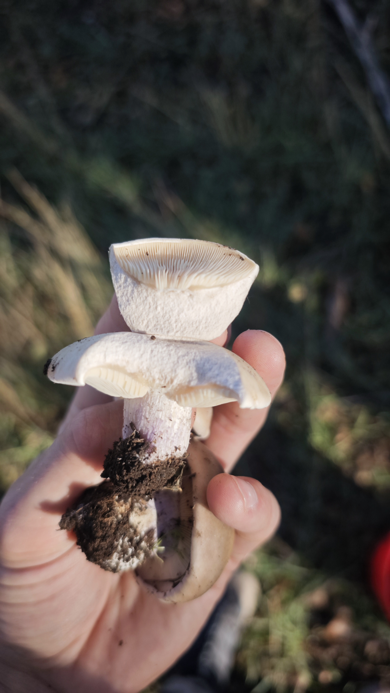 Думаю это рядовка лиловоногая. Просто у вас мелкие, молоденькие грибочки. Если приглядеться на ножках можно заметить слегка лиловые штрихи…