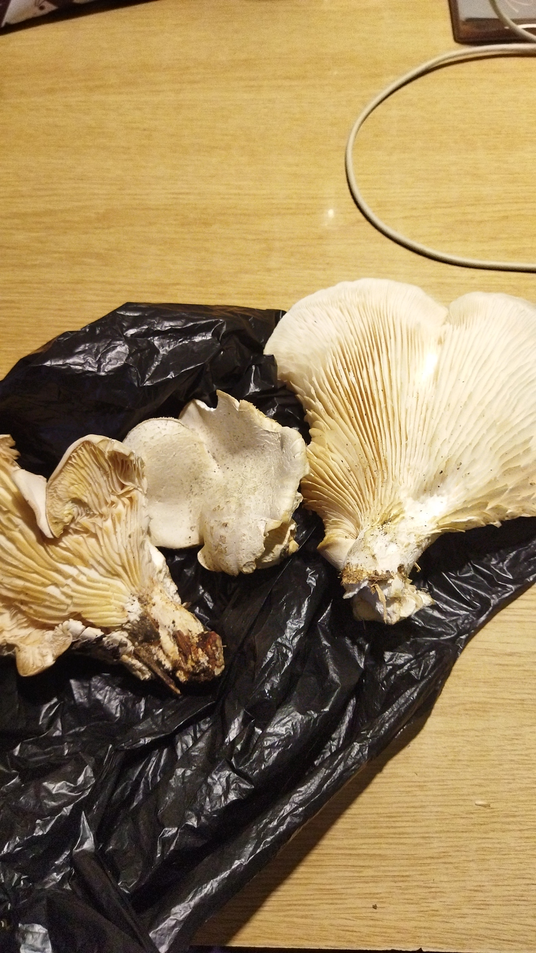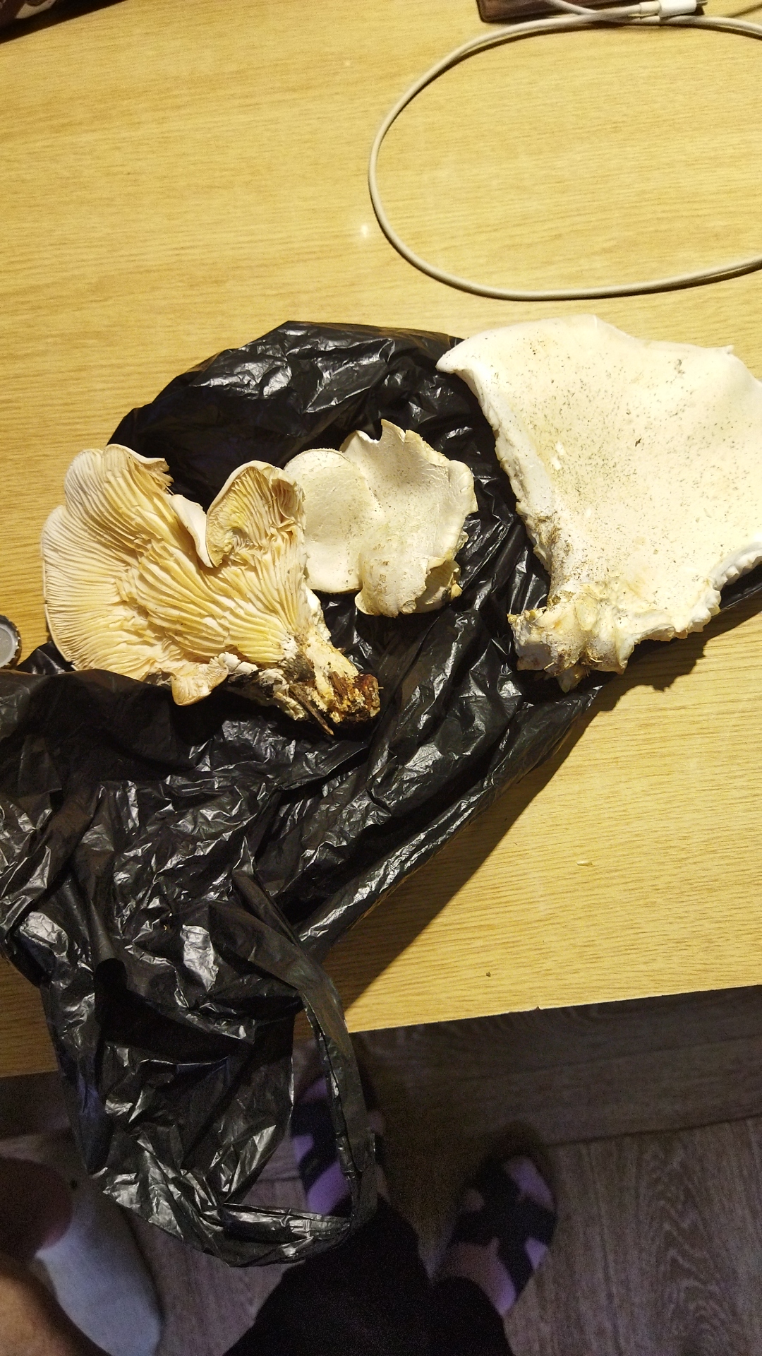 Одиночныый гриб снизу вроде чешуйчатка разрушающая не съедобен,а другие какие то вешенки.