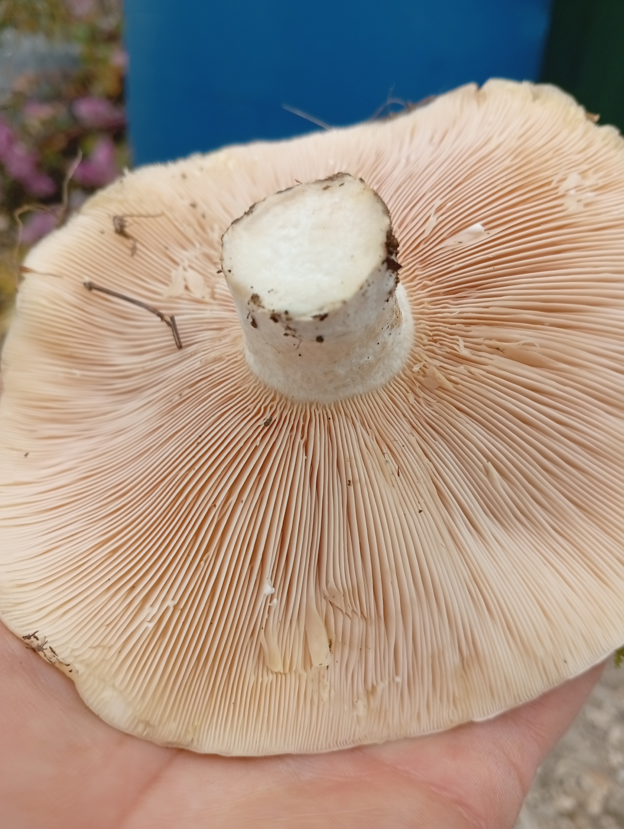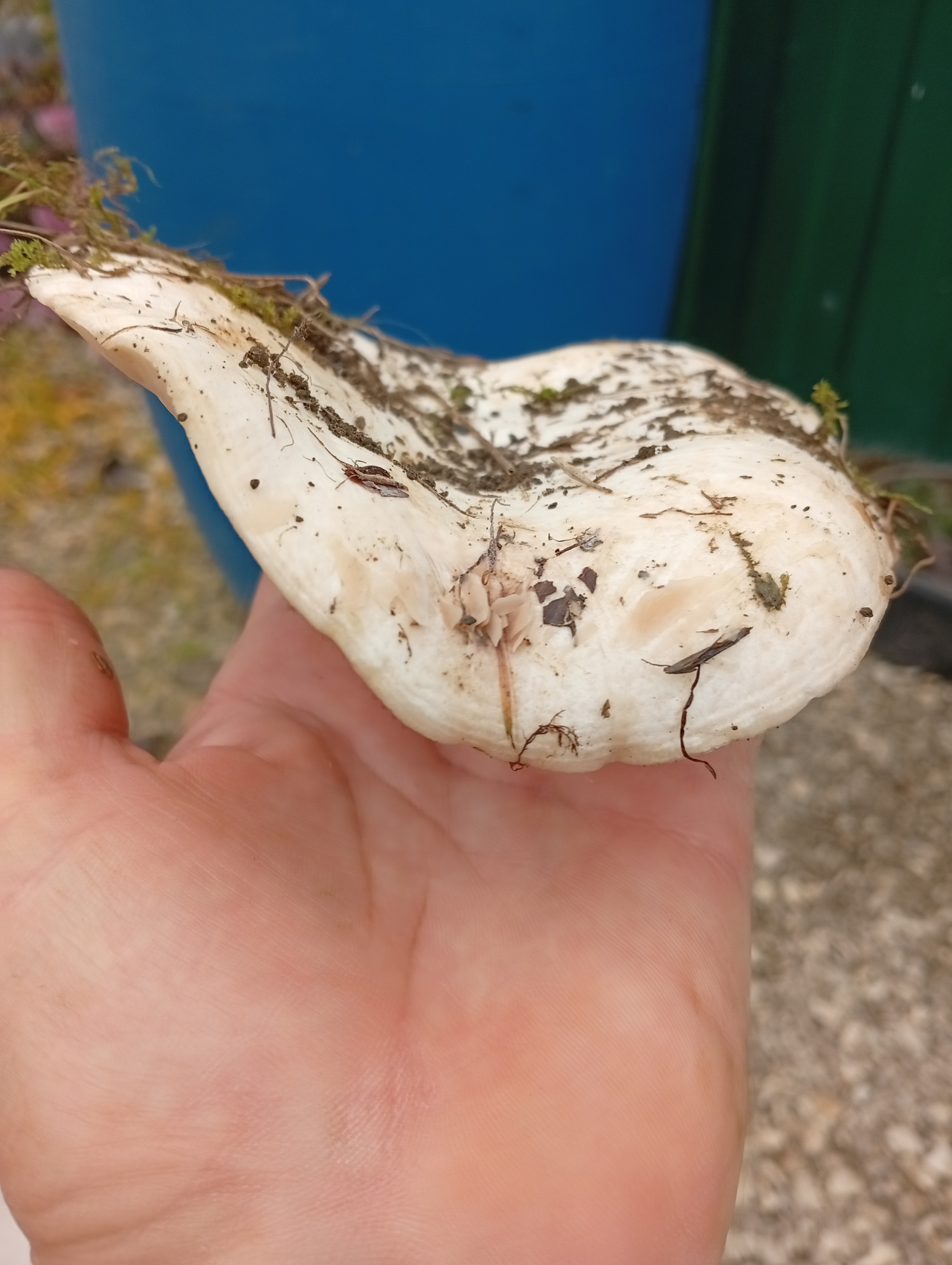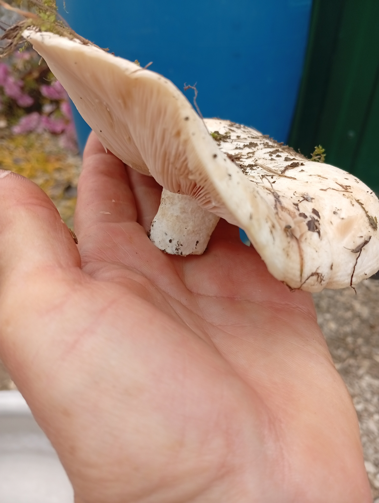 Описание гриба: Найден в тополевой посадке. Шляпка ок. 12 см. , приподнята, слегка изогнута. Цвет чисто белый, низ пластинчатый, чуть розоватый, ножка короткая, без полости, на срезе цвет не меняется, запах неразличим, вкус острый, горчичный, похож на крессалат