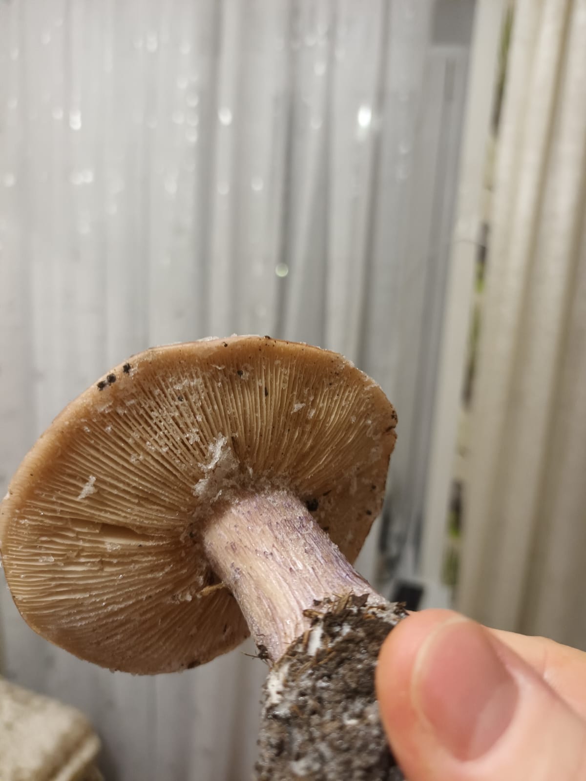 Описание гриба: Найден в городе, в лесопосадке за поликлинникой, сверху немного иния от холодильника