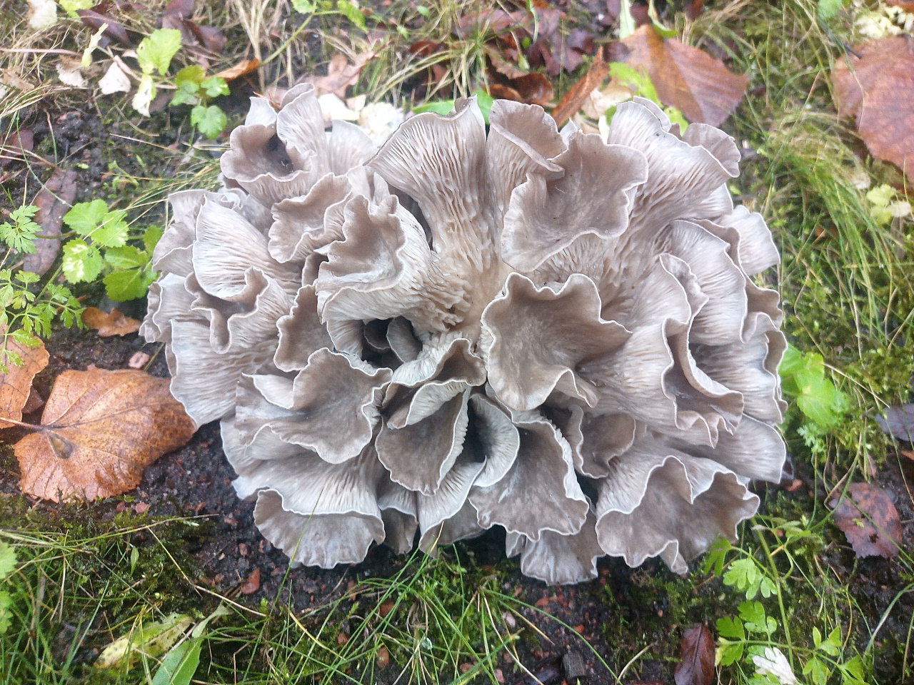 Описание гриба: Рос в Царском селе, перед зданием бани, 13.11.2025, пахнет грибом, приятно, выглядит, как гриб… Форма плодовых тел необычная…