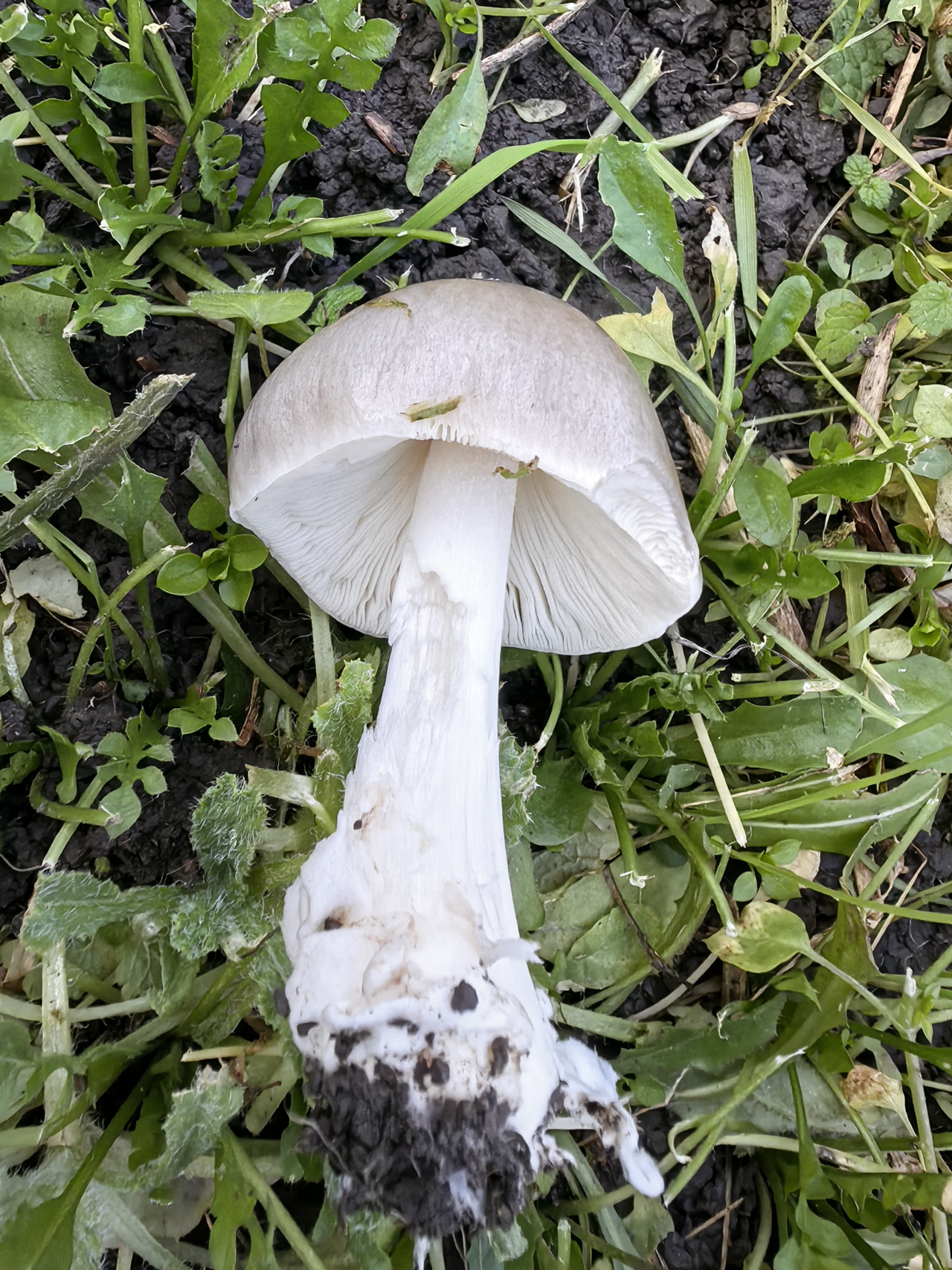 Описание гриба: Вышла в огород, а там вот такие красавцы усеяли поле с низкой травой, молоденькие смотрятся как серые яички торчат из земли диаметр шляпки на малышах не разкрытых около 5 см, вот тот что уже на ножке диаметр около 8см, я не грибник, кто такие не пойму, подскажите пожалуйста