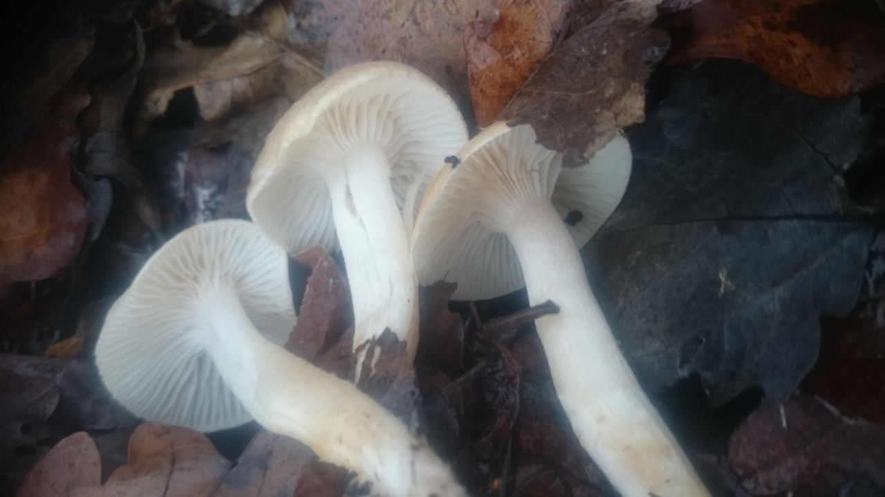 Описание гриба: 14.11.25г. Росли среди дубового опада. Шляпки слегка слизистые, диаметром до 8см. Похожи на гигрофоры, но шляпки светловатые и коричневатые, а не сероватые. Или какая нибудь говорушка. Запах не чувствовался.
